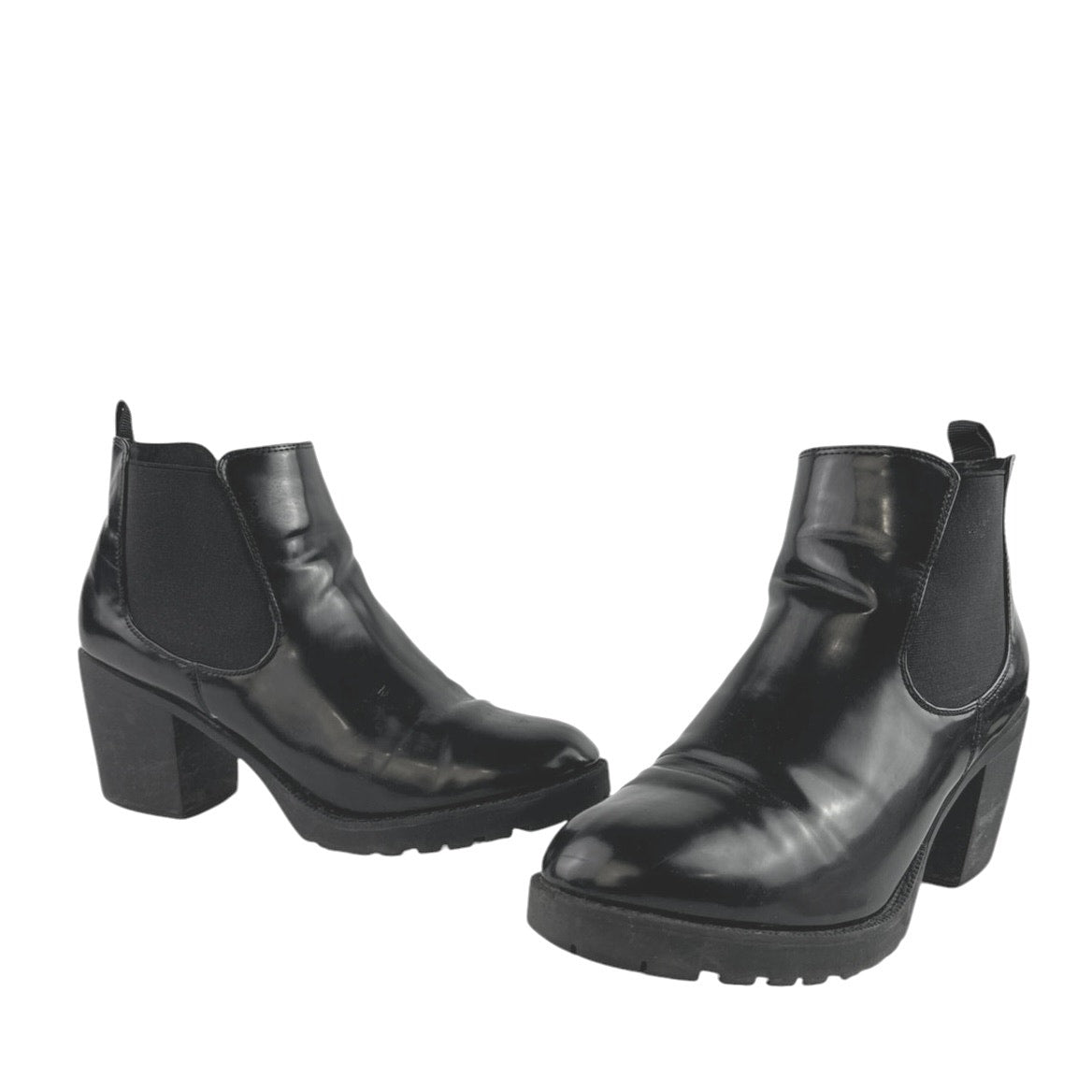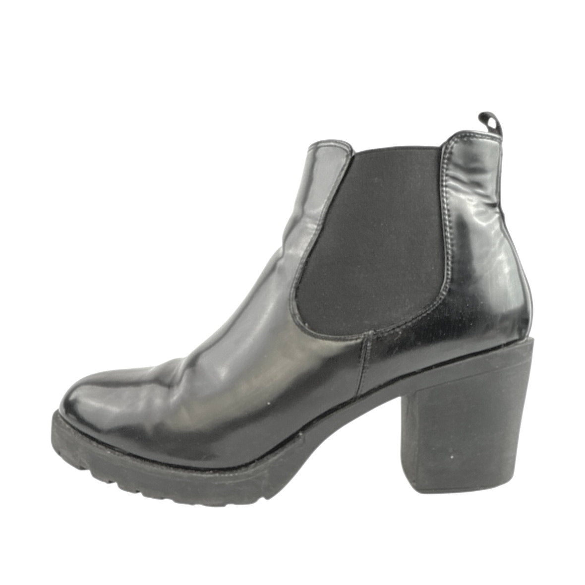 Halston Women's Black Vegan Leather Round Toe Block Heels Chelsea Boots Size 11