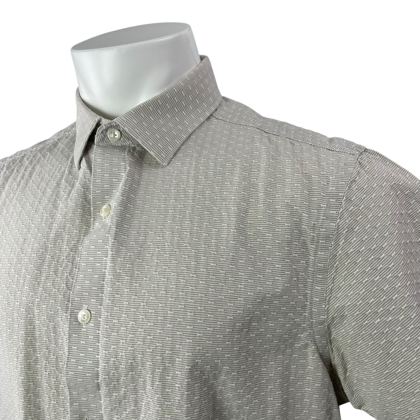 Hart Schaffner Marx Men's Gray Embroidered Short Sleeve Button Up Shirt Top Sz L