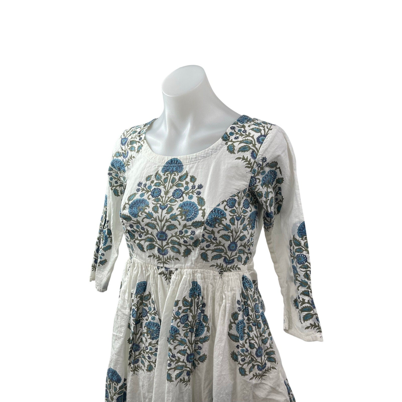 Hassans Floral 3/4 Sleeve Traditonal Anarkali Kurta Tunic Midi A-Line Dress M