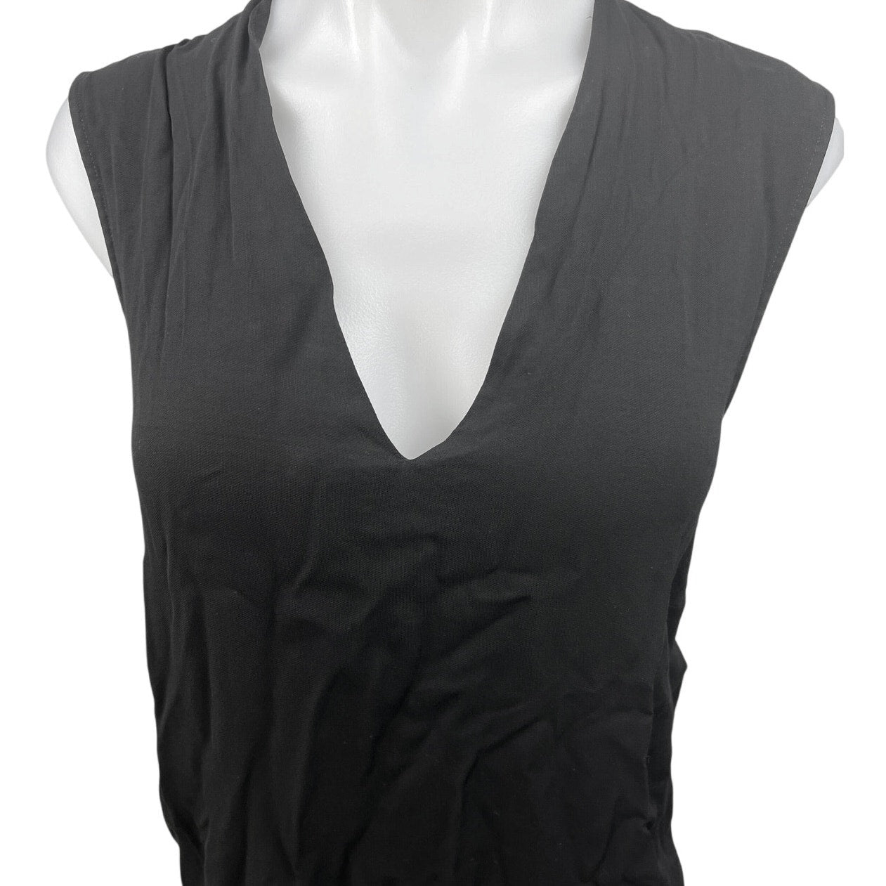 Helmut Lang Black Sleeveless Plunging V-neck Pull On Pockets Mini Tank Dress Size S