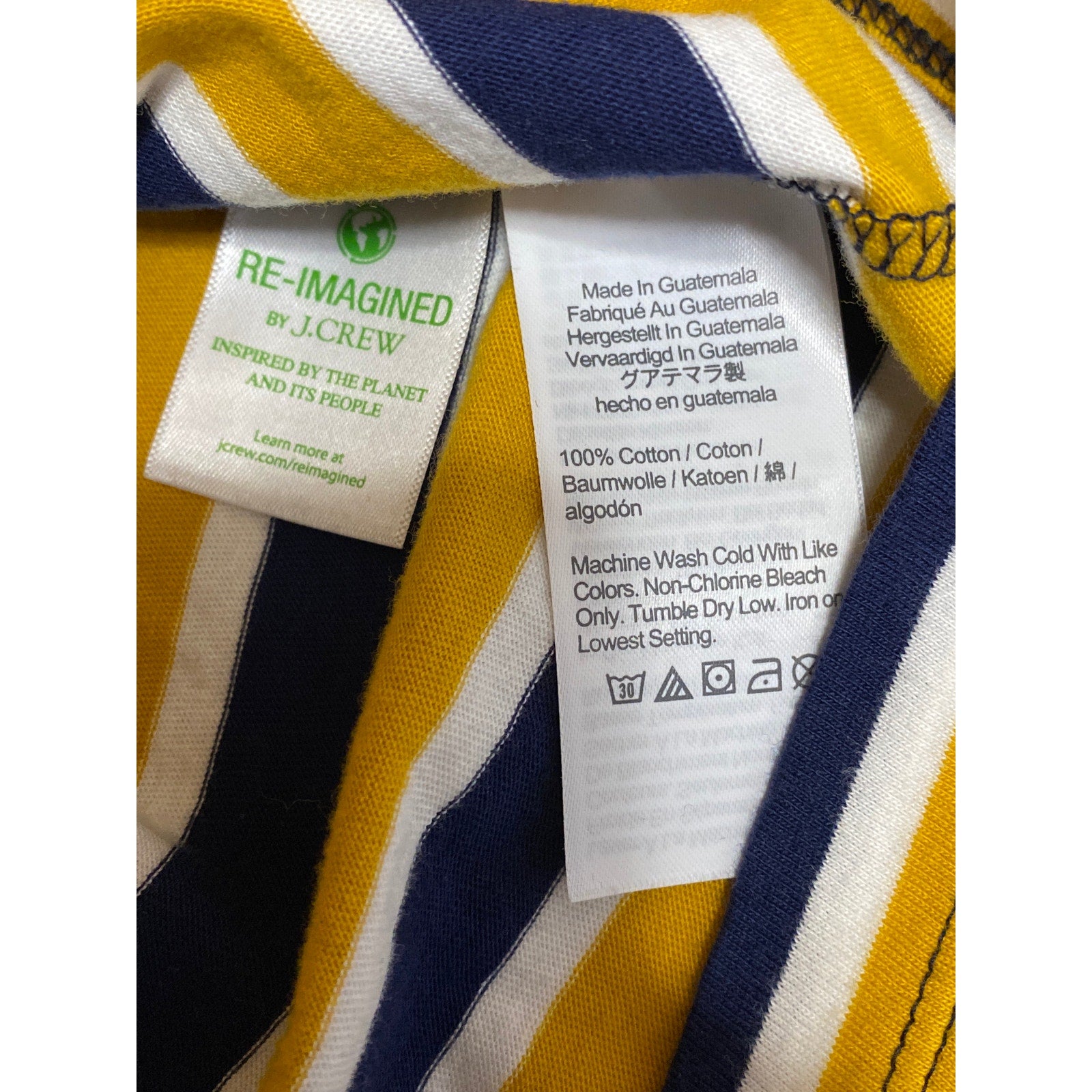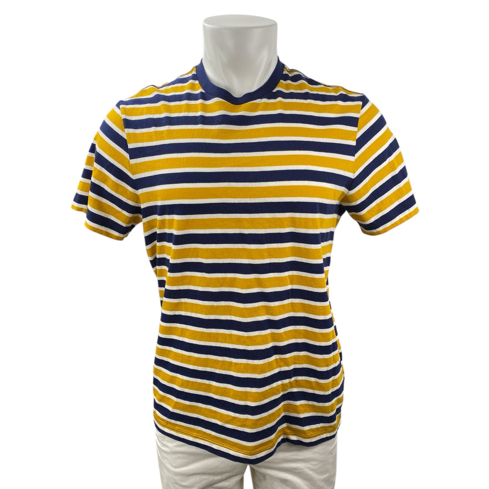 J.Crew Men's Yellow Blue Striped Washed Short Sleeve Crewneck T Shirt Tee Top M