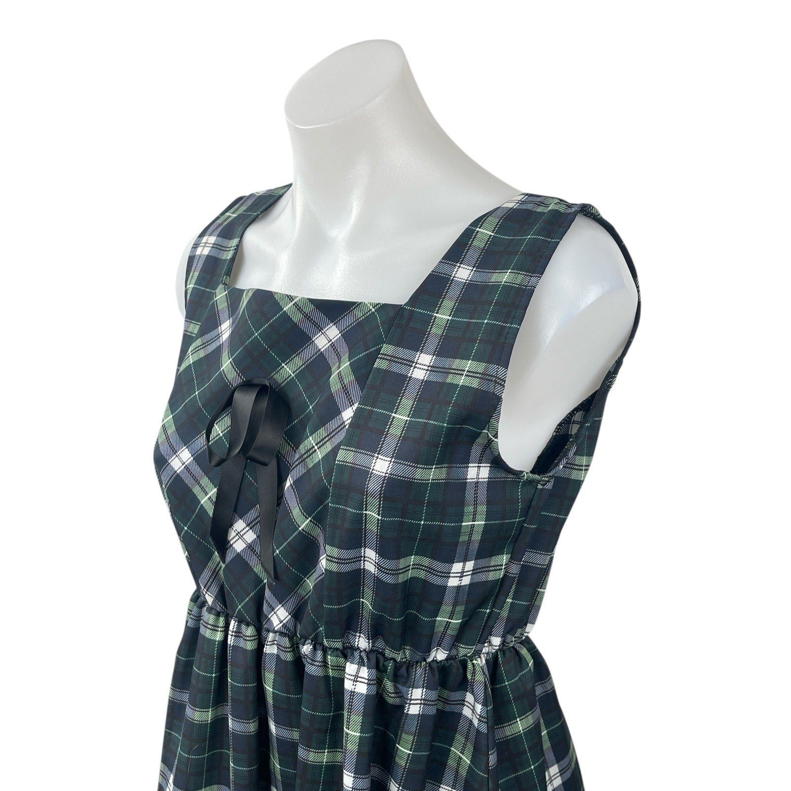 Juan Juan Green Plaid Check Lace Trim Ruffled Mini Tank Flare A-Line Dress S/M