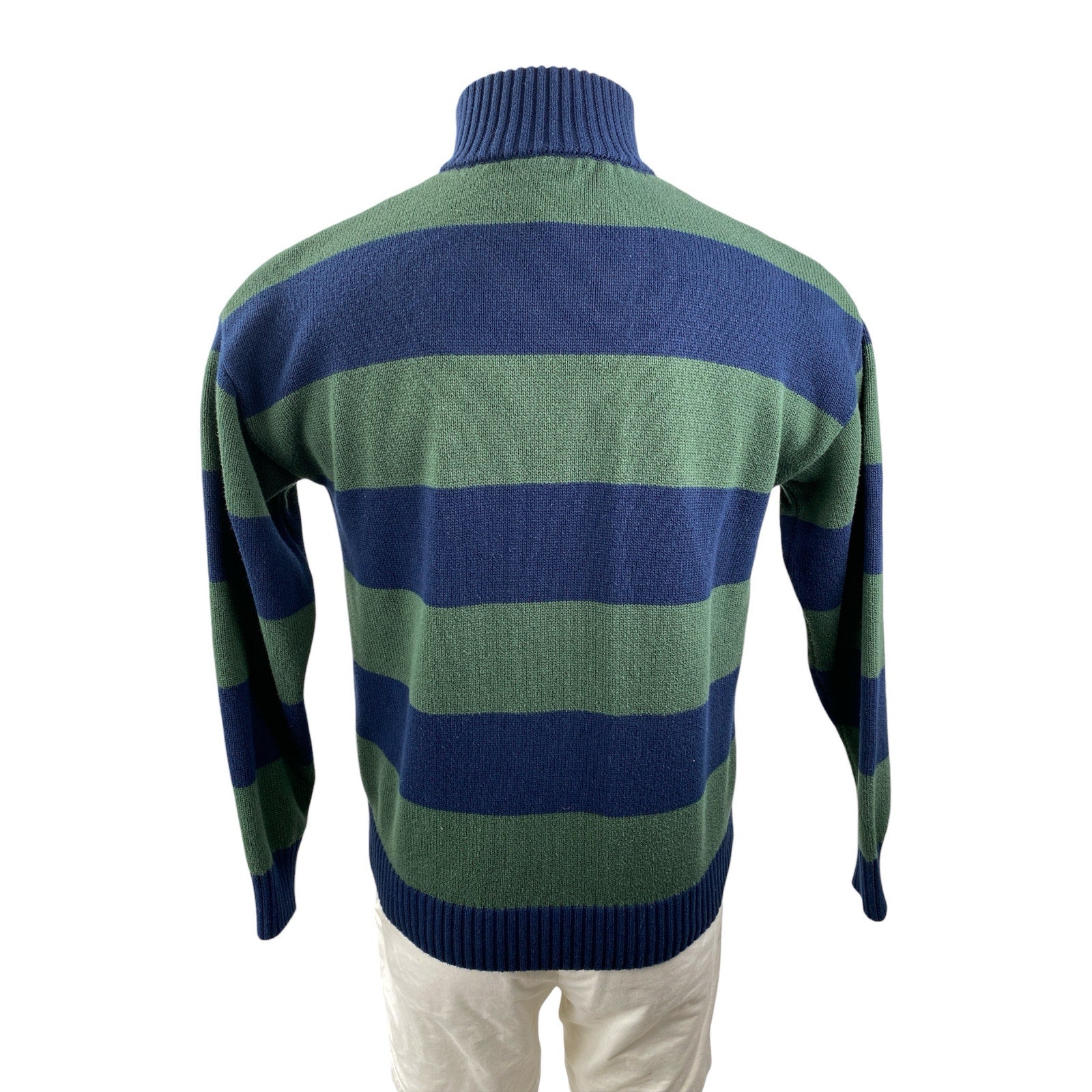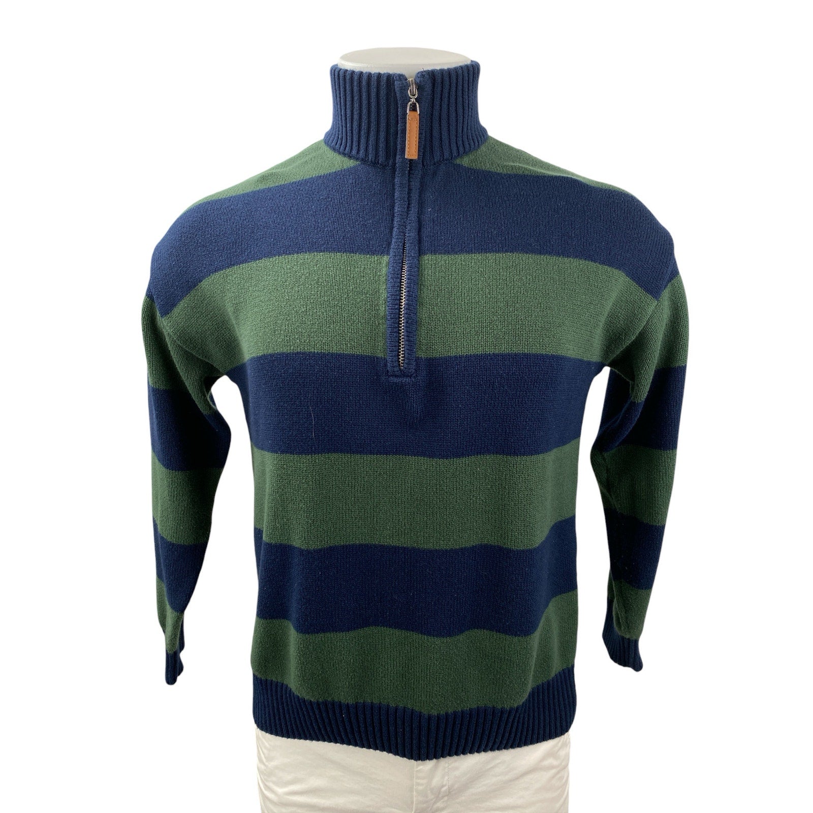Justify Mens Blue Green Striped Long Sleeve Quarter Zip Rugby Sweater Top Size S