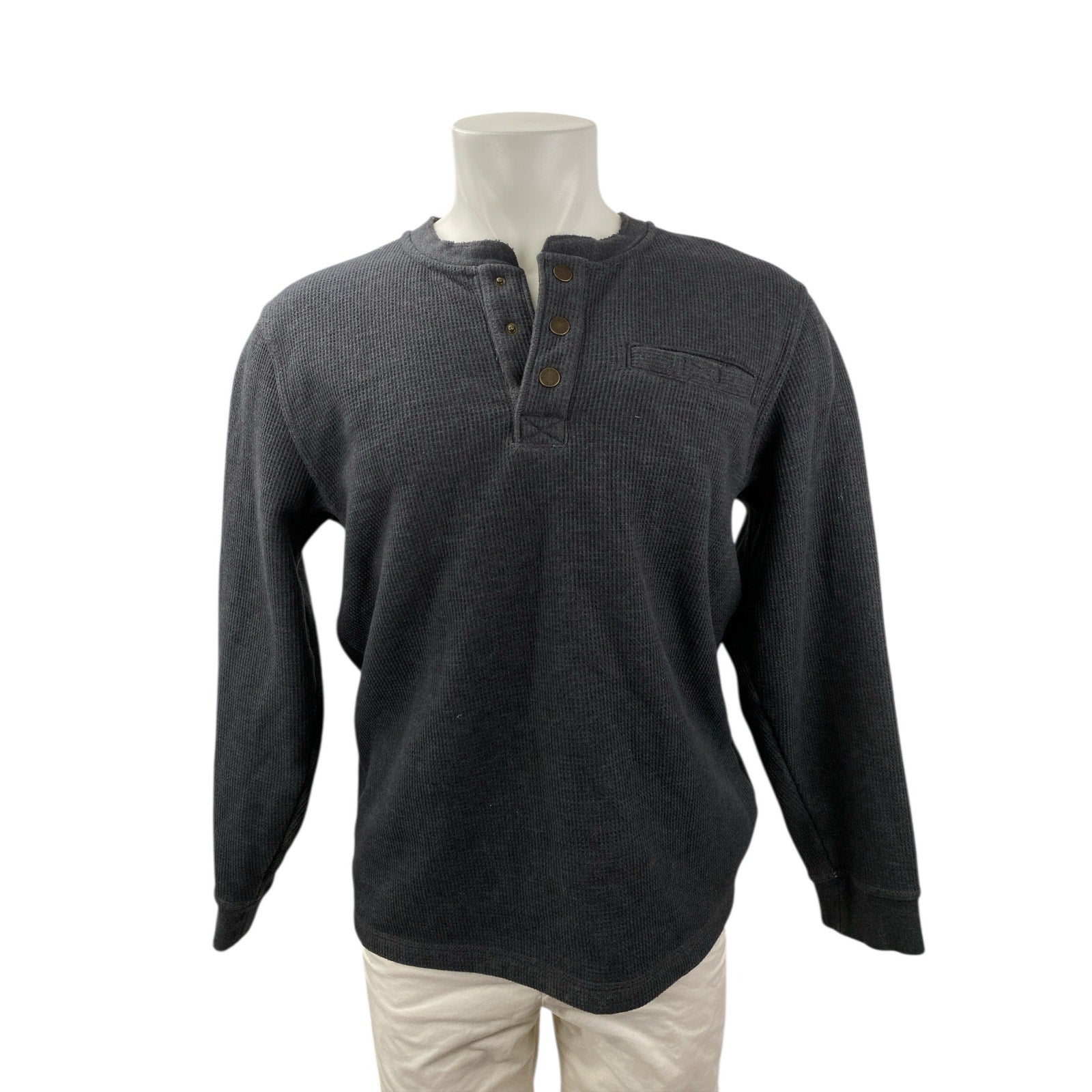 L.L. Bean Men's Black Long Sleeve Henley Waffle Knit Faux Sherpa Sweater Top M
