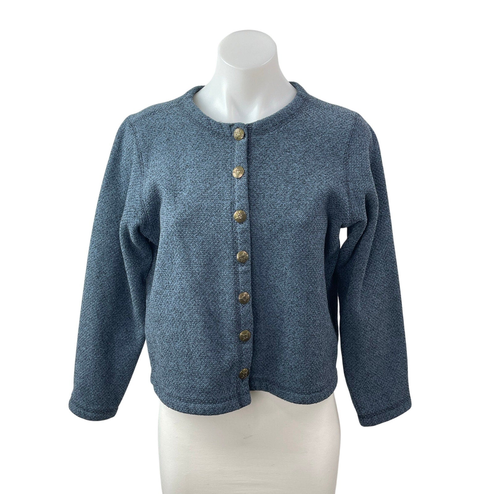 L.L. Bean Women's Blue Sherpa Lined Long Sleeve Button Up Cardigan Sweater Top M