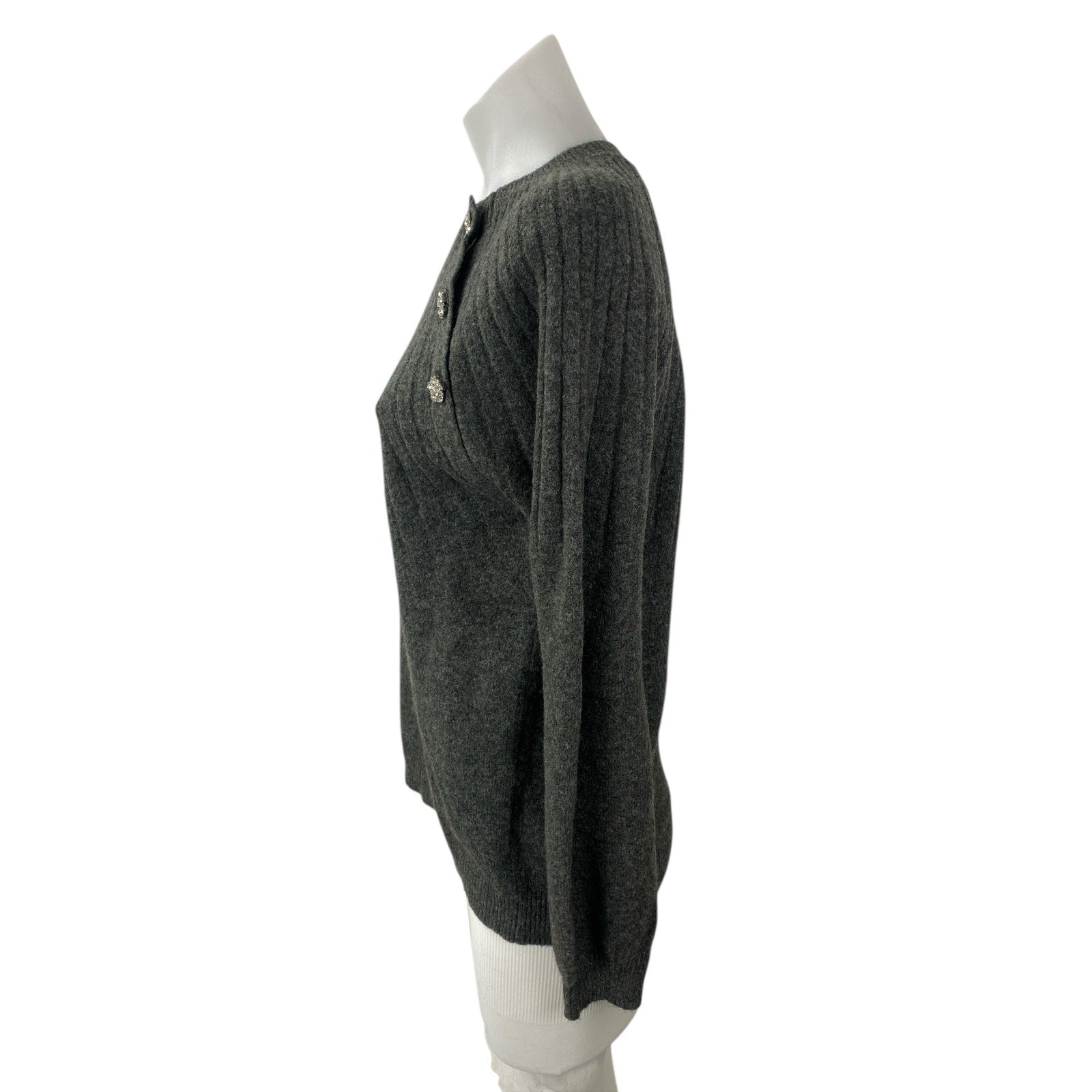 Loft Gray Wool Crew Neck Long Sleeve Button Shoulder Sweatshirt Sweater Top Sz S