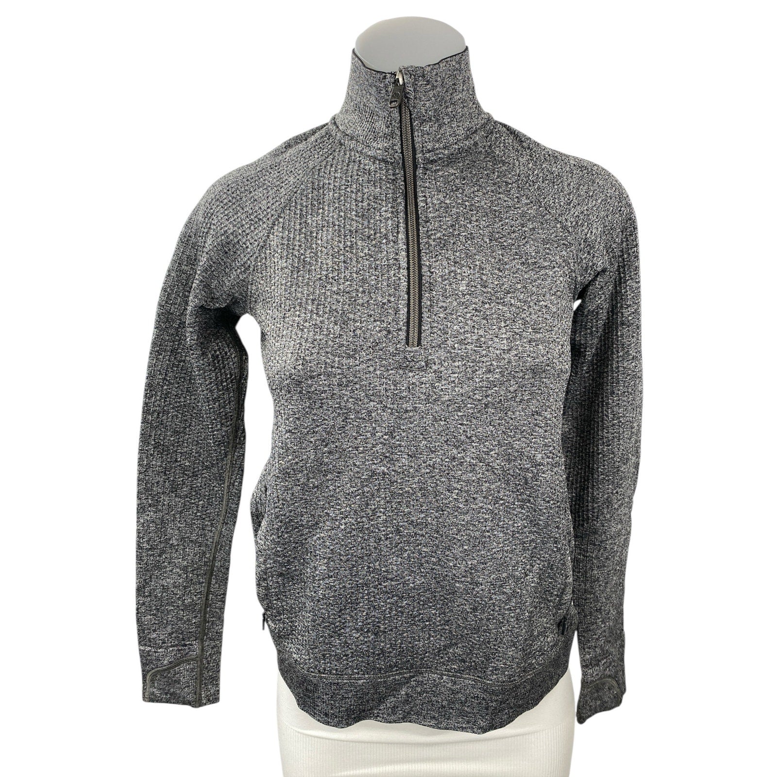 Lululemon Women's Gray Half Zip Ribbed Knit Long Sleeve Sweatshirt Top Size 4