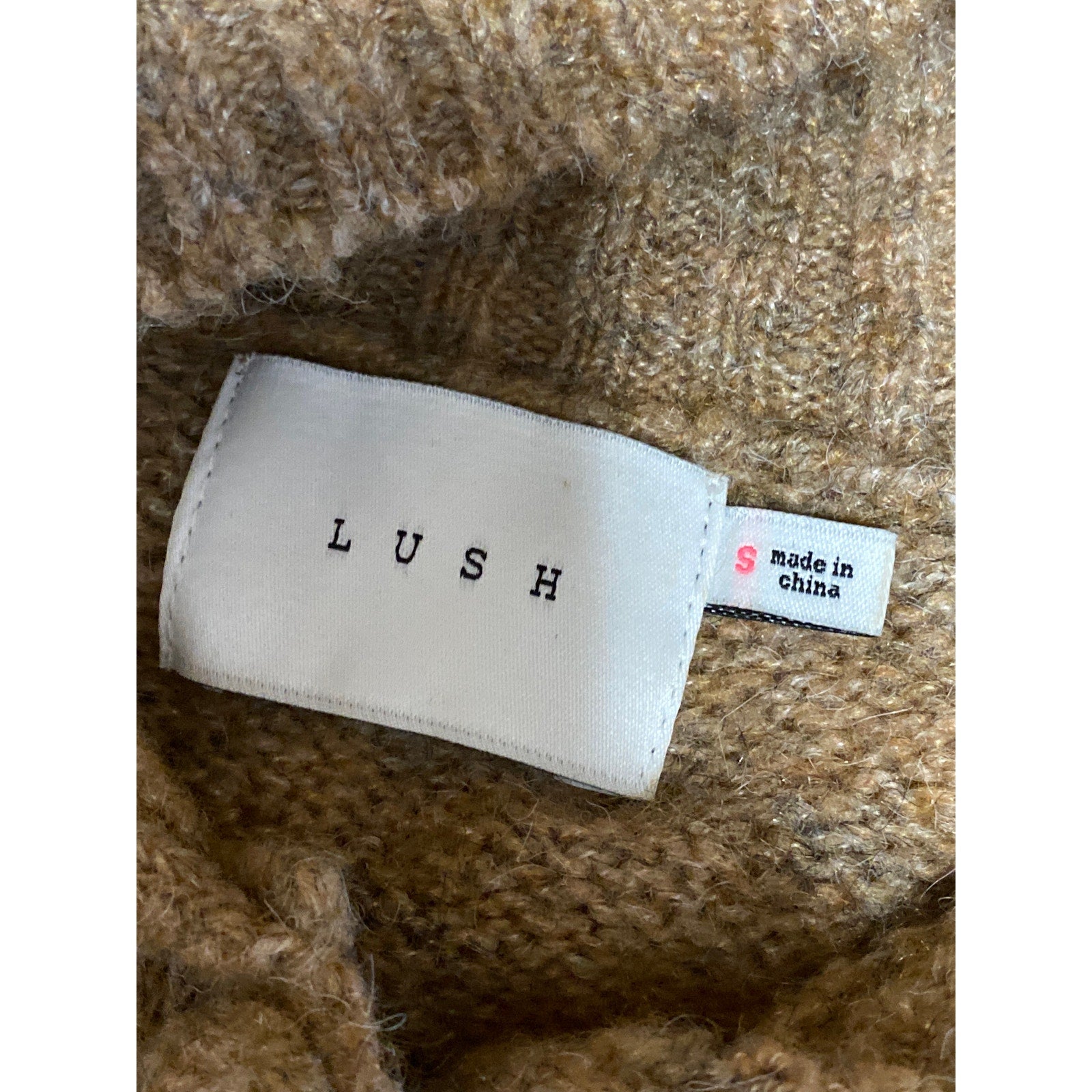 Lush Brown Wool Collared Long Sleeve Button Down Crop Cardigan Sweater Top Sz S