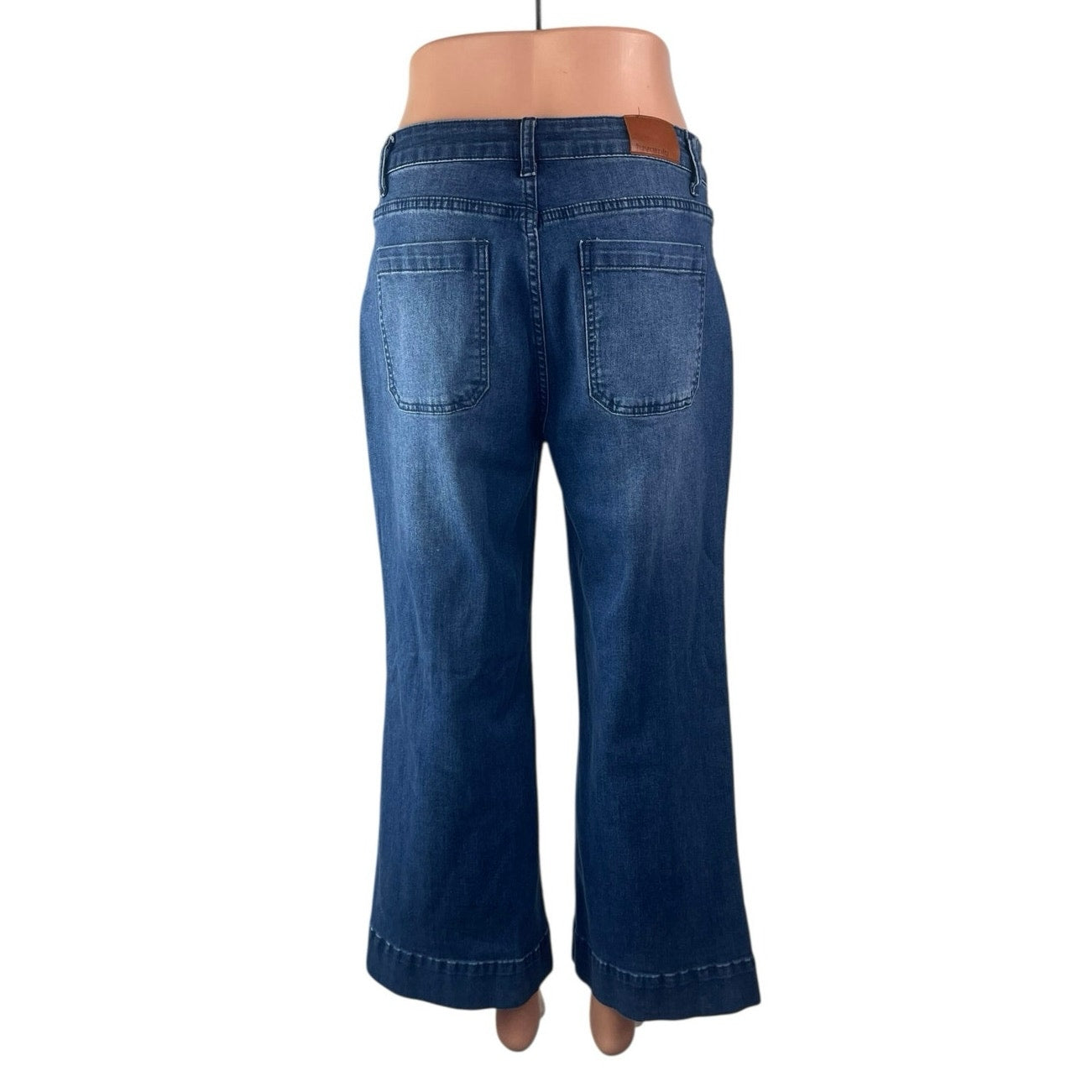 Luvamia Women's Blue High Waisted Cropped Flared Wide Leg Denim Jeans Pants Size M