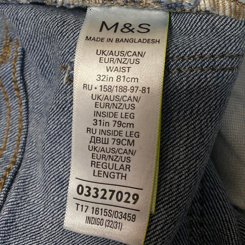 M&S Mark & Spencer Men's Blue Dark Wash Slim Straight Leg Denim Jeans Size 32