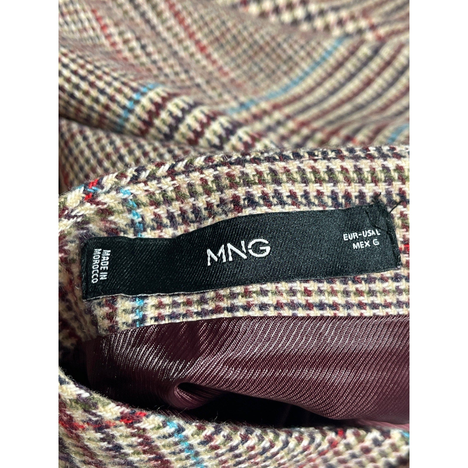 Mango MNG Gray Wool Plaid Checkered High Waist Mini Flared A-Line Skirt Size L