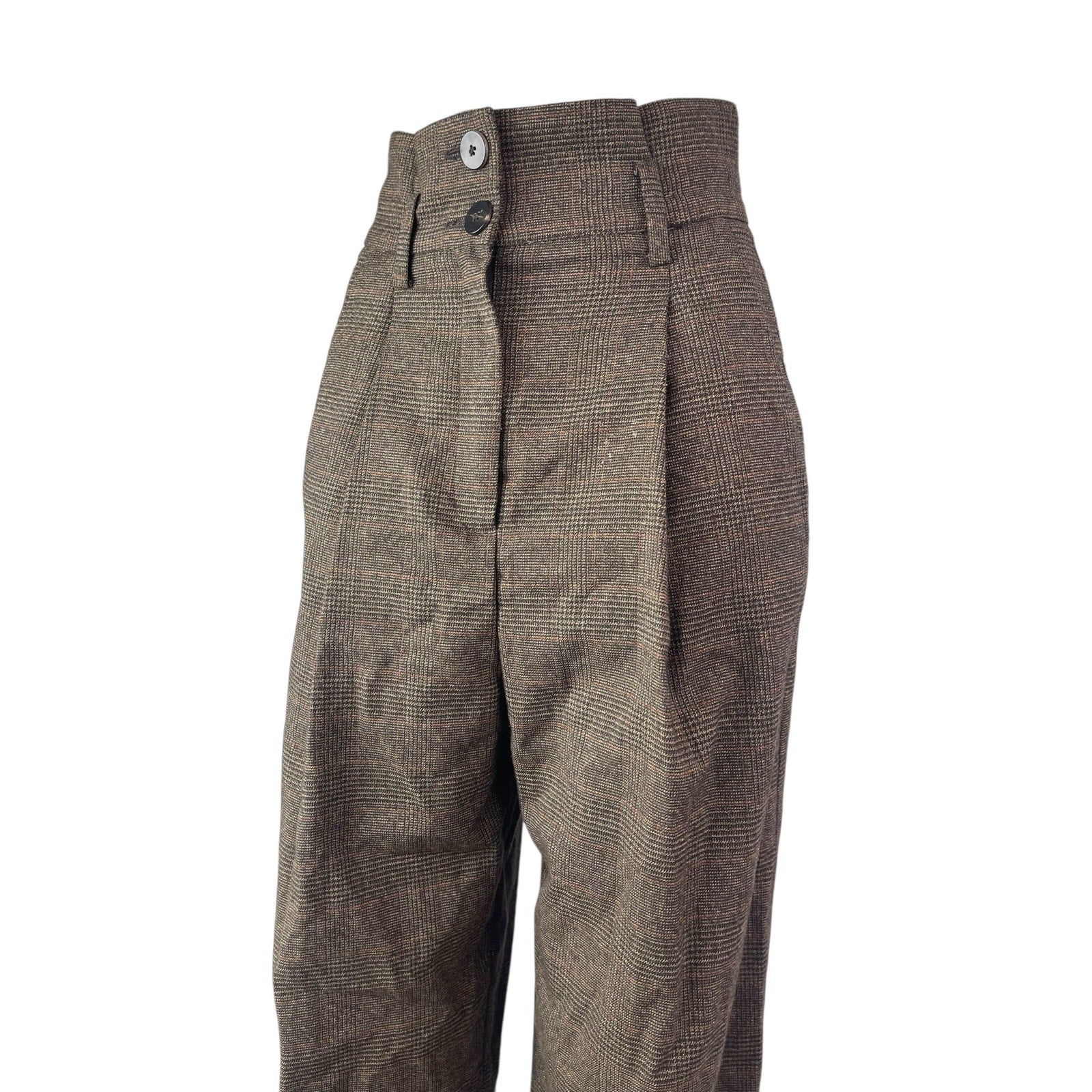 Mango Suit Plaid High Rise Pleated Carrot Barrel Tapered Trousers Dress Pants S