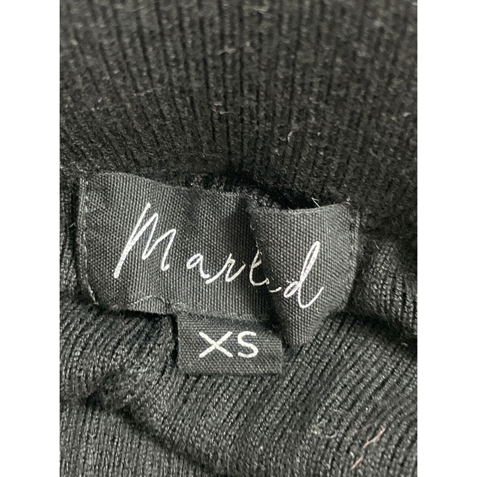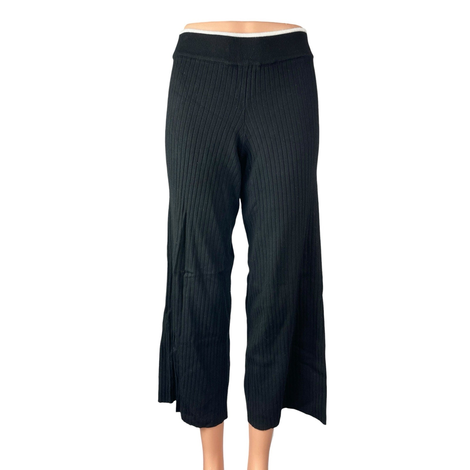 Marled Women's Black Ribbed Knit High Rise Wide Leg Cropped Trousers Pants Sz XS