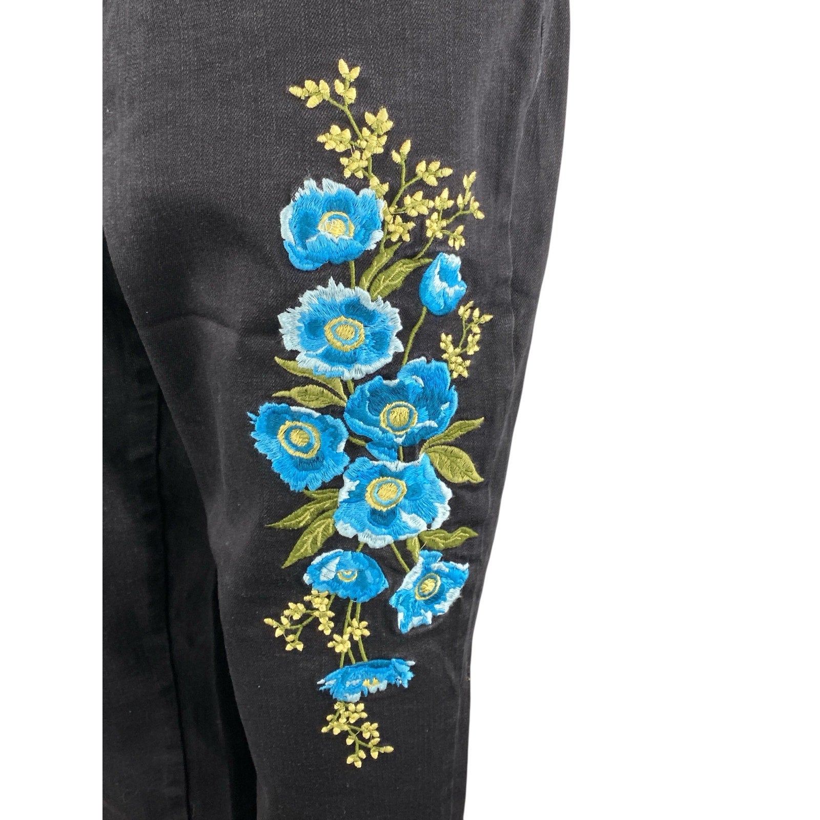 Martha Stewart Black High Rise Floral Embroidered Straight Denim Jeans Pants 14