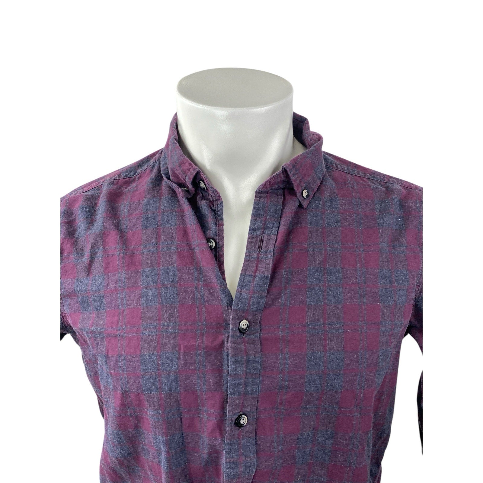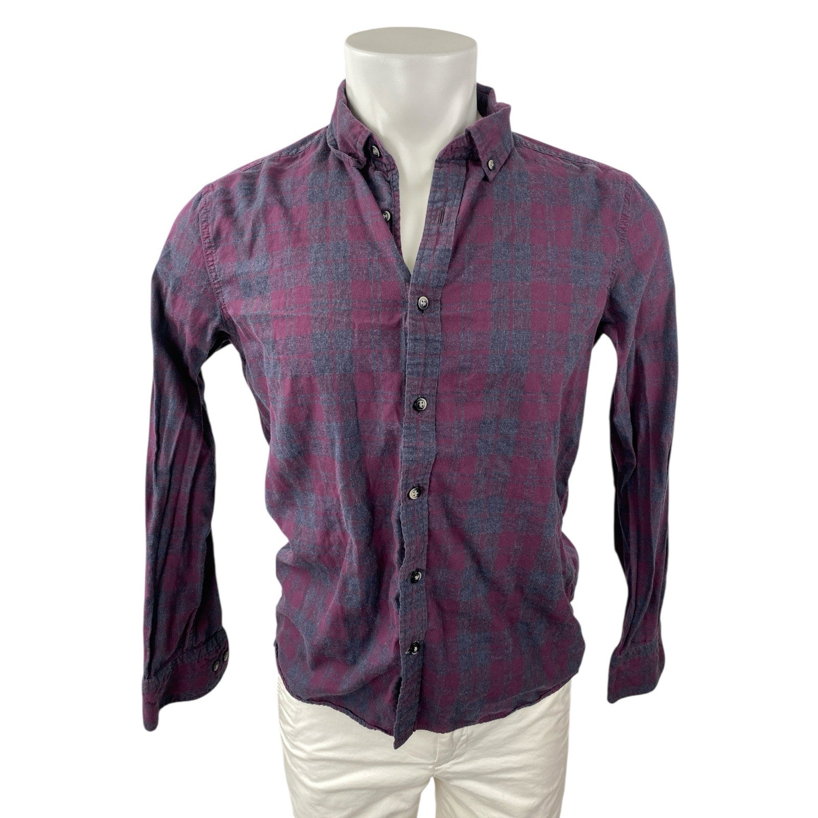 Men's Purple Plaid Checkered Collared Long Sleeve Casual Button Down Shirt Top S