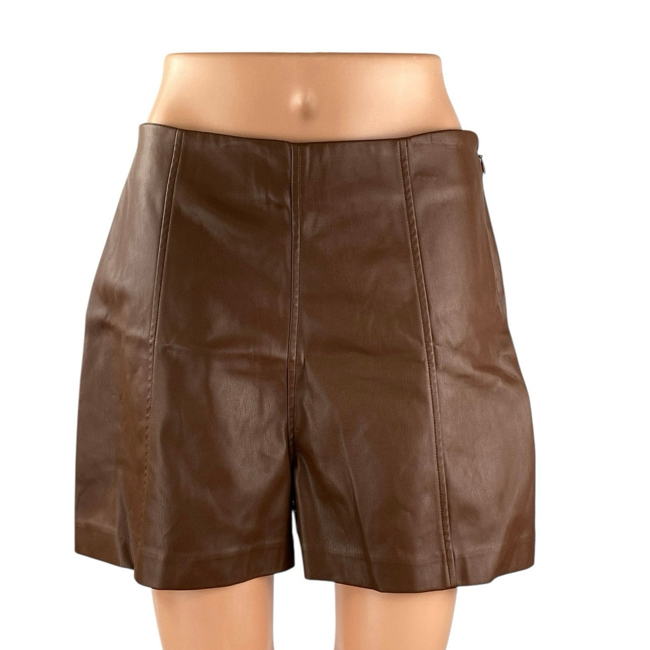 Meshki Women's Brown Fleece Lined High Rise Faux Leather Vegan Mini Shorts Sz M