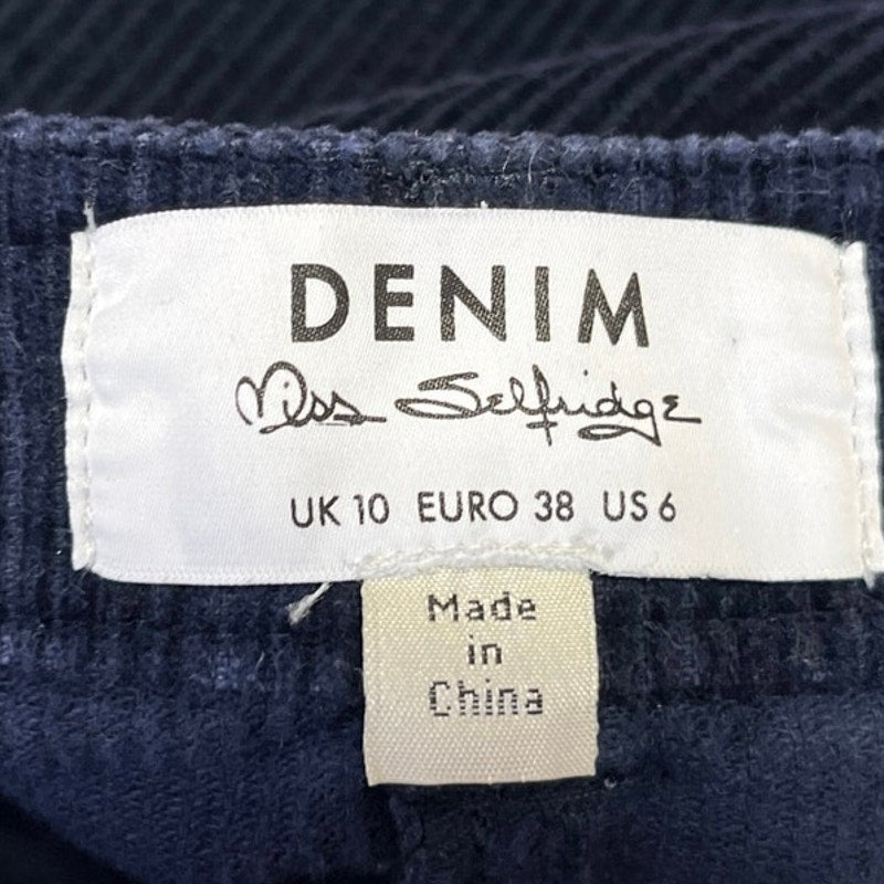 Miss Selfridge Blue Corduroy Velvet Button Down Straight Pencil Mini Skirt Size 6