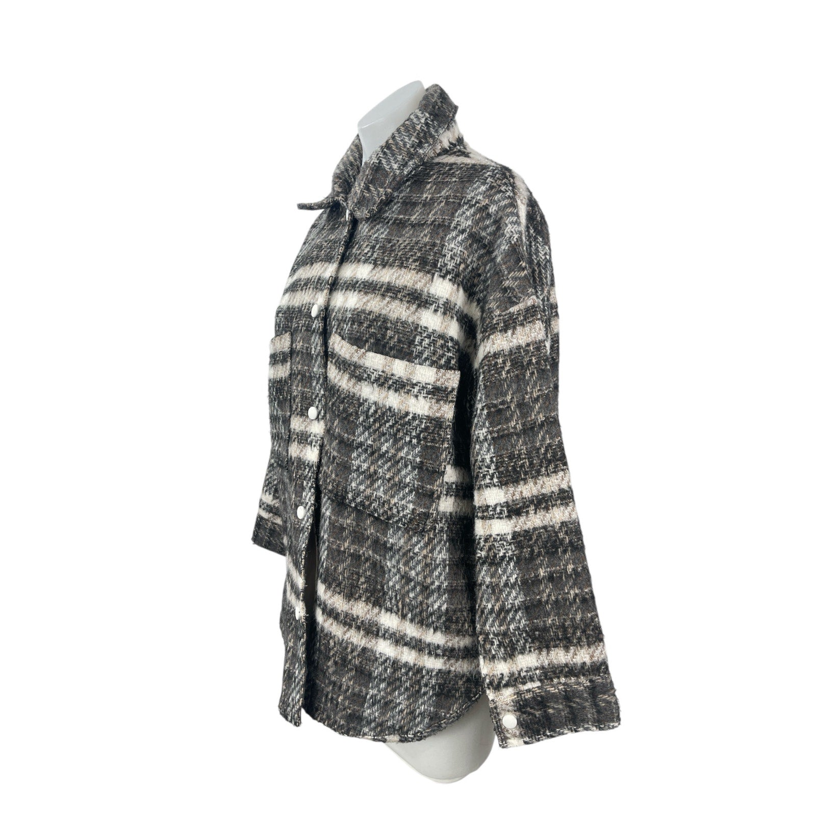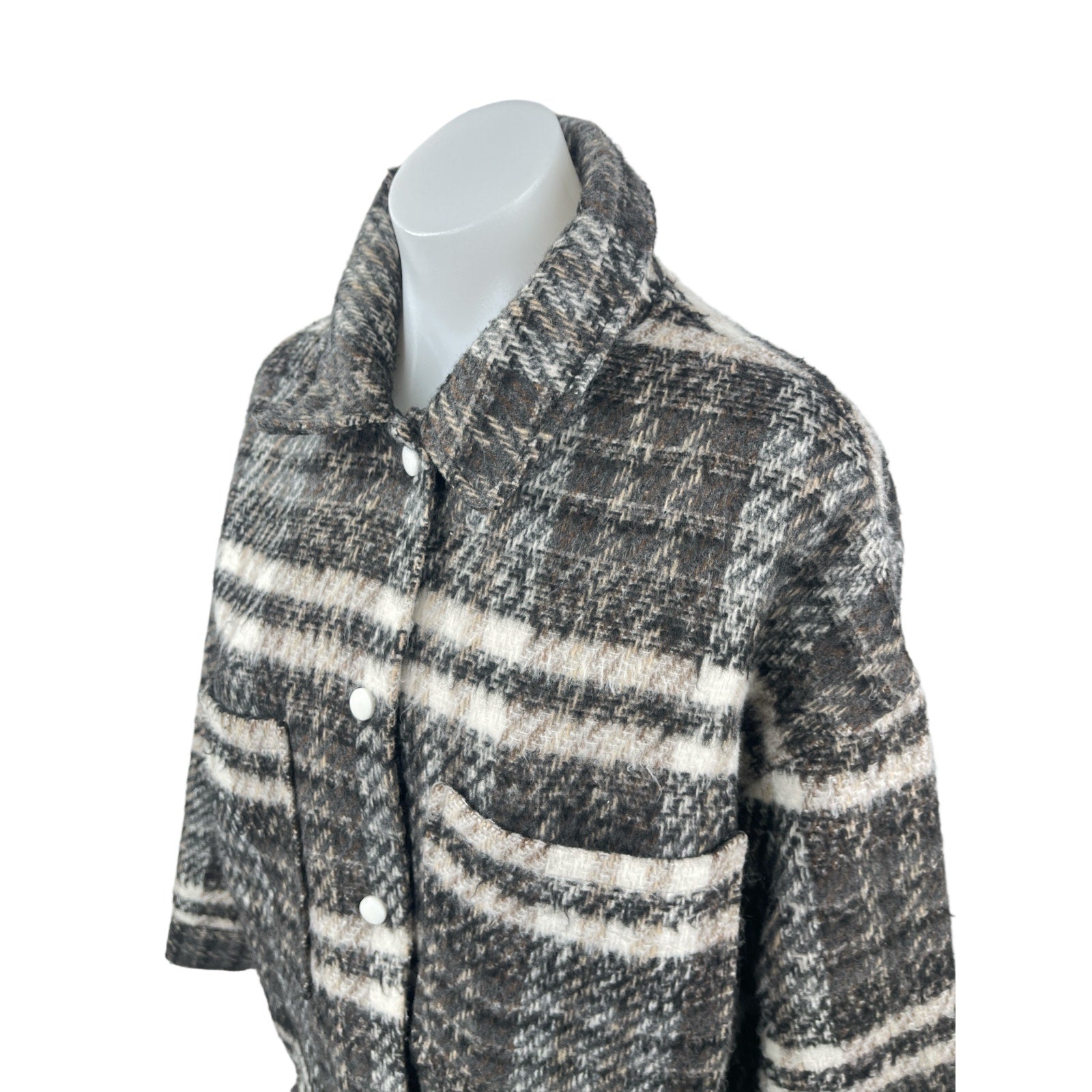 Missguided Gray Wool Plaid Collared Long Sleeve Button Down Shirt Coat Jacket 6