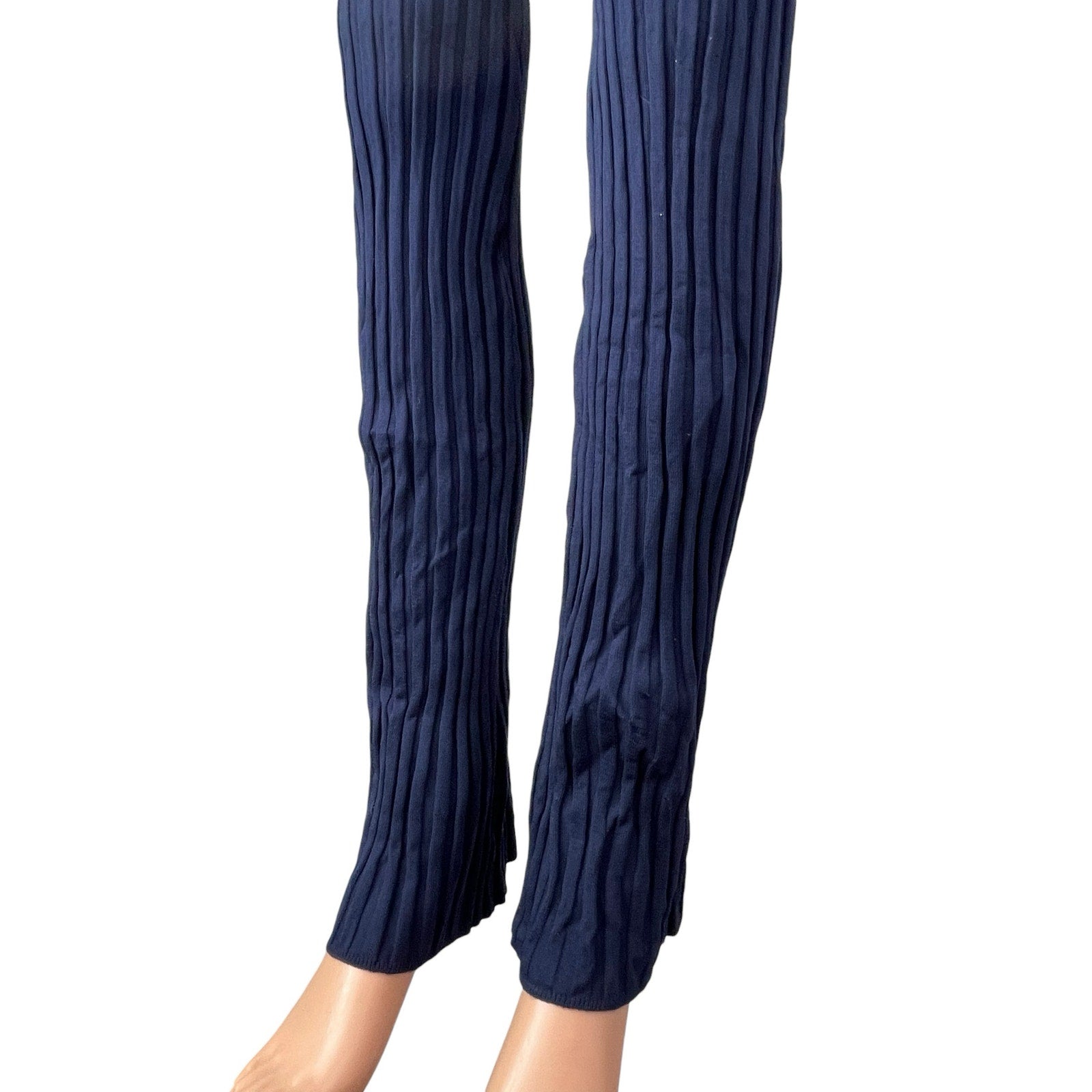 MNG Mango Blue Ribbed High Rise Skinny Yoga Athletic Activewear Leggings Pants S