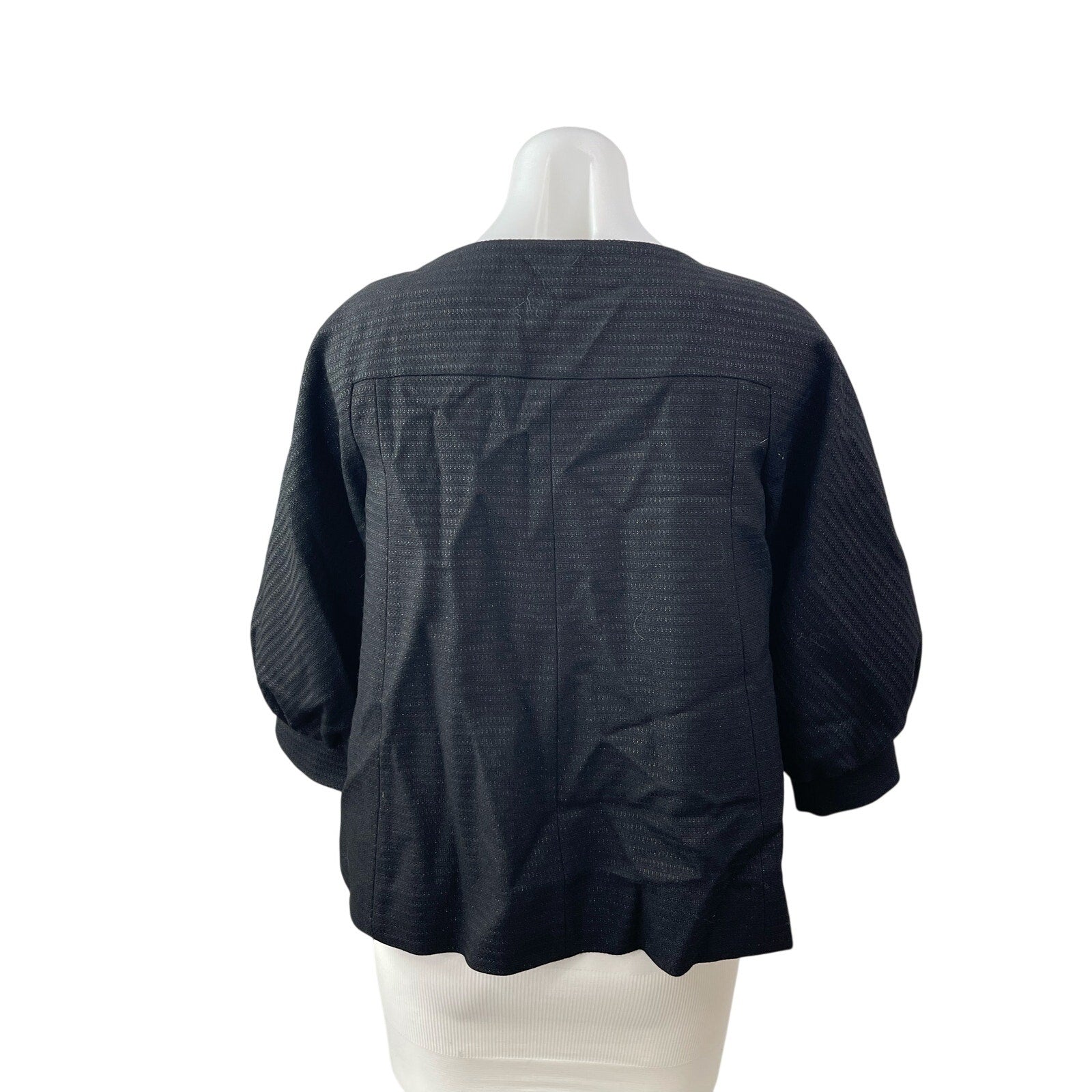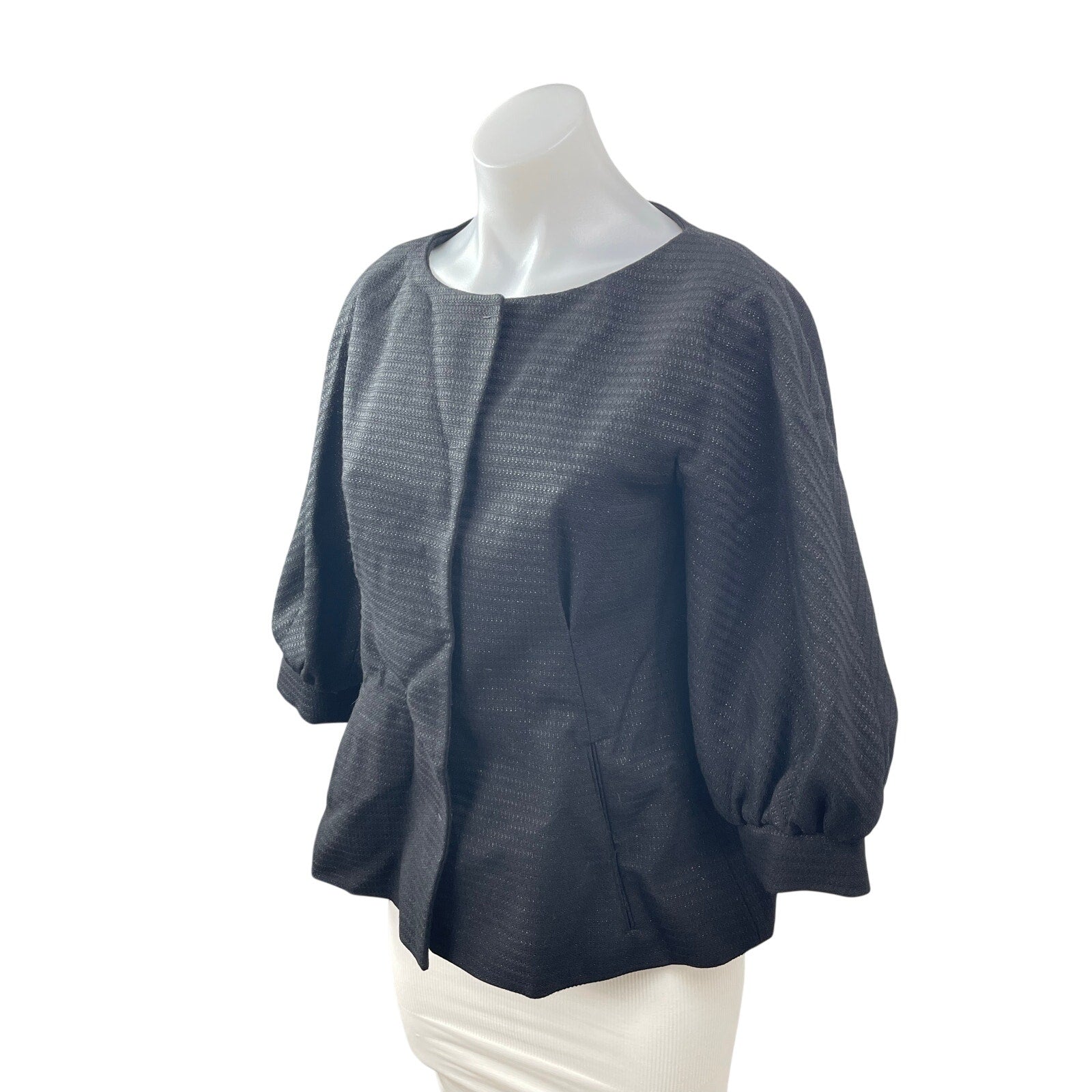 Moschino Wool Women's Black Tweed Balloon Sleeve Cropped Blazer Coat Jacket M/L