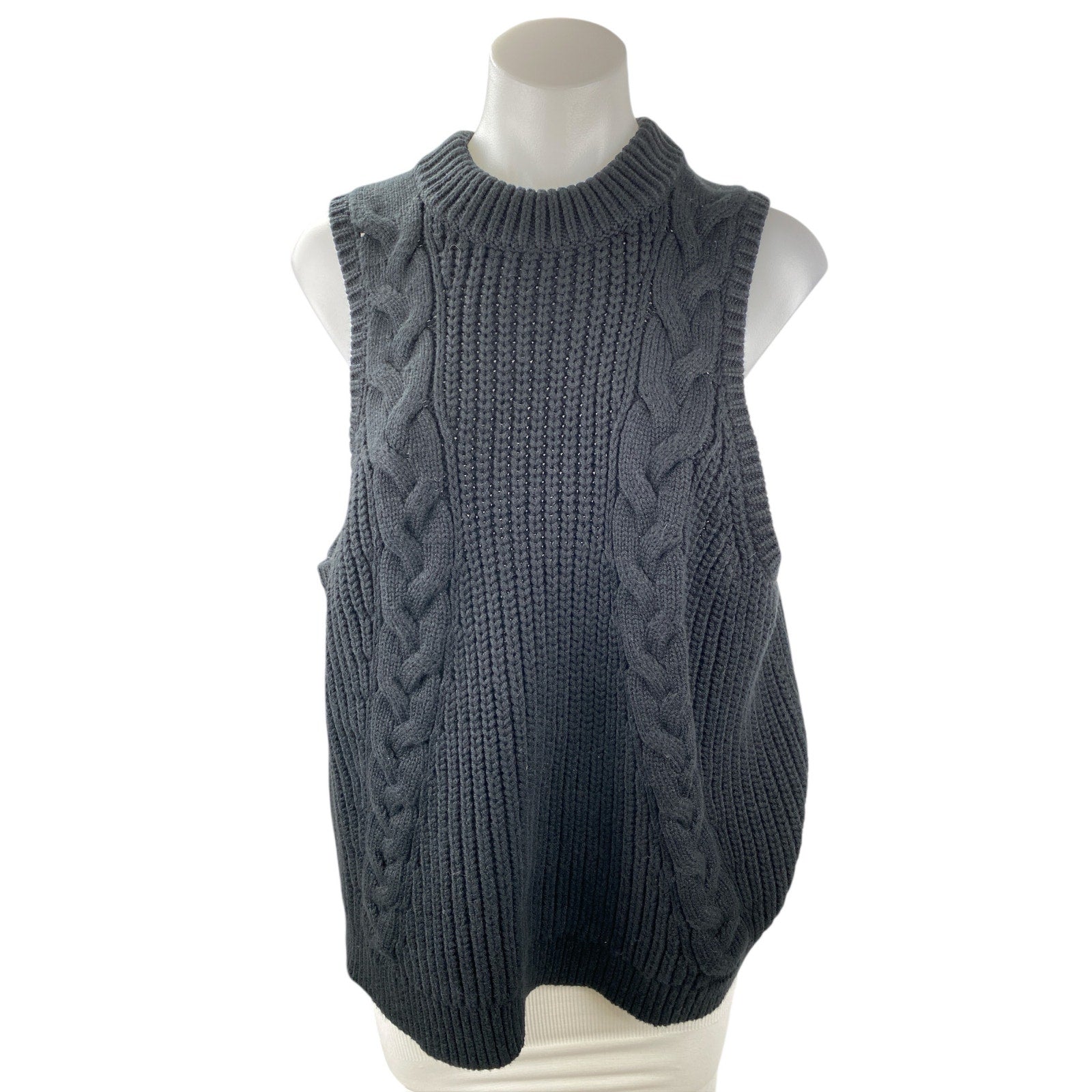 NEW Banana Republic Black Cable Knit Sleeveless Crewneck Tank Sweater Top Size L
