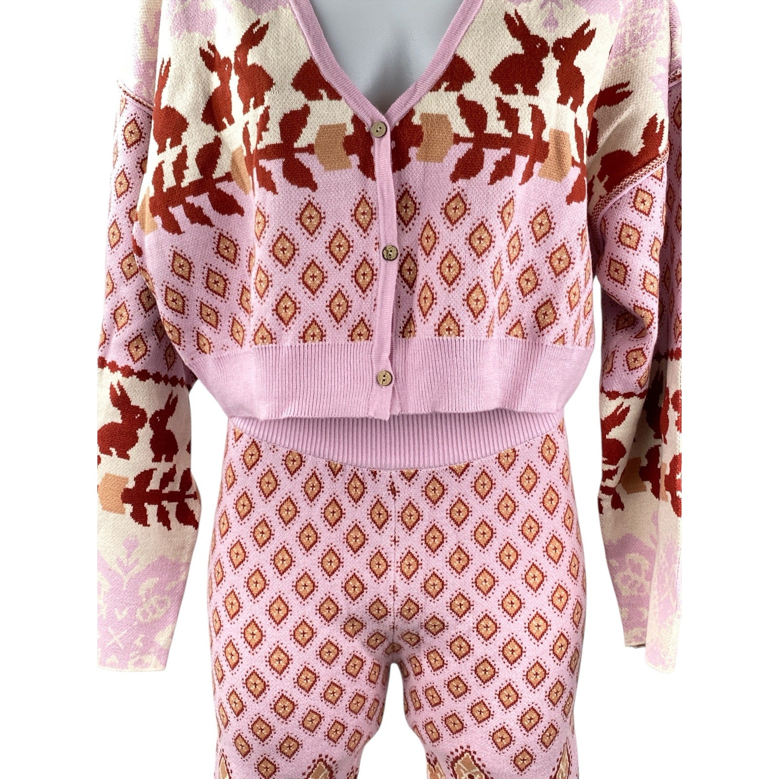 NEW Free People Pink Knit Snow Bunny Crop Sweater 2-Piece Pajama Lounge Set Size S