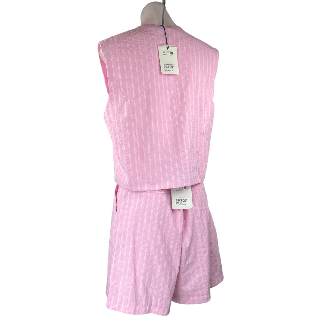 NEW Glamorous Pink White Striped Sleeveless Button Up Vest Top Shorts Set Sz 10