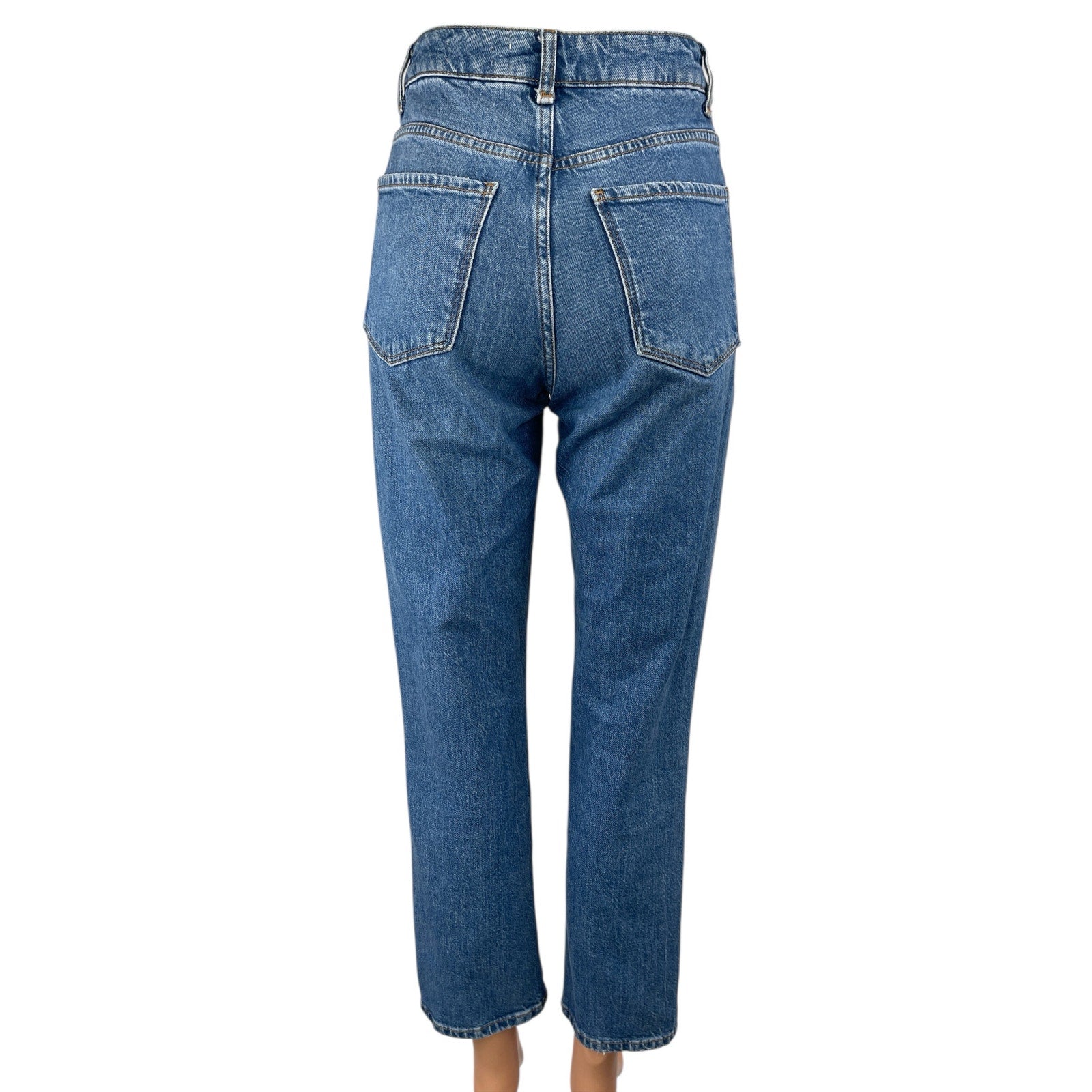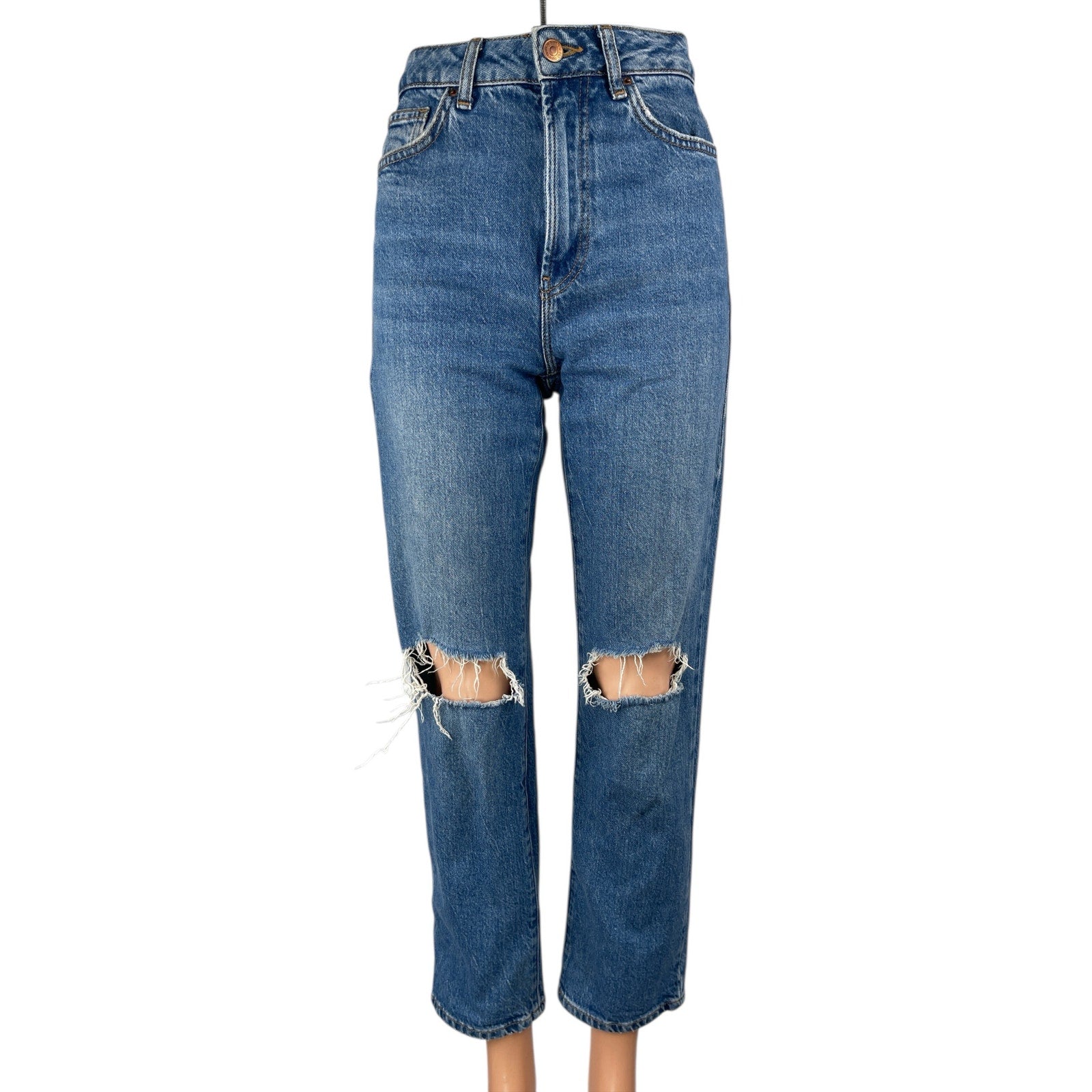 New Look Women's Blue Distressed High Waisted Straight Denim Mom Jeans Pants 2