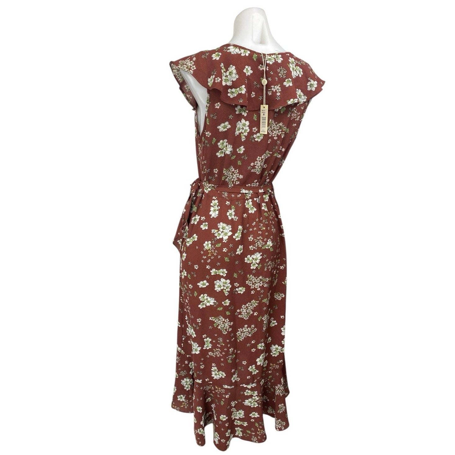 NEW Max Studio Brown Floral Ruffle Sleeveless Midi A-Line Wrap Dress $128 Size M