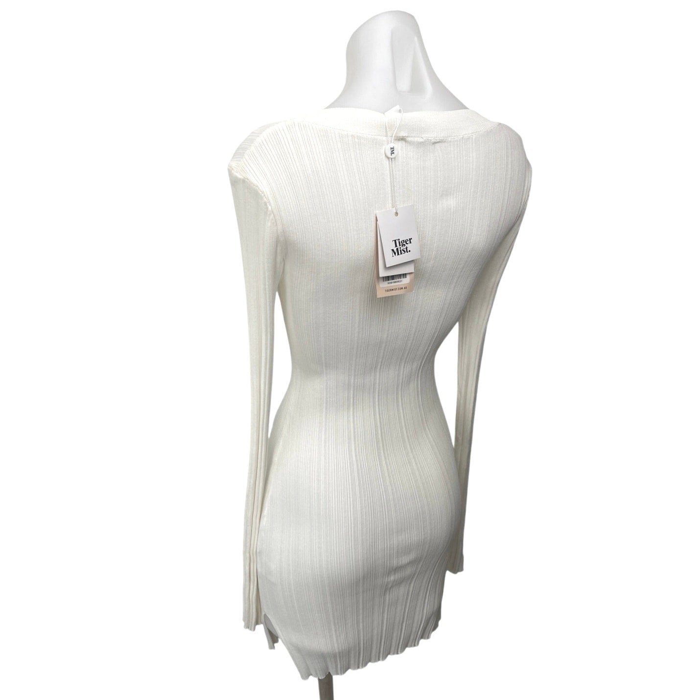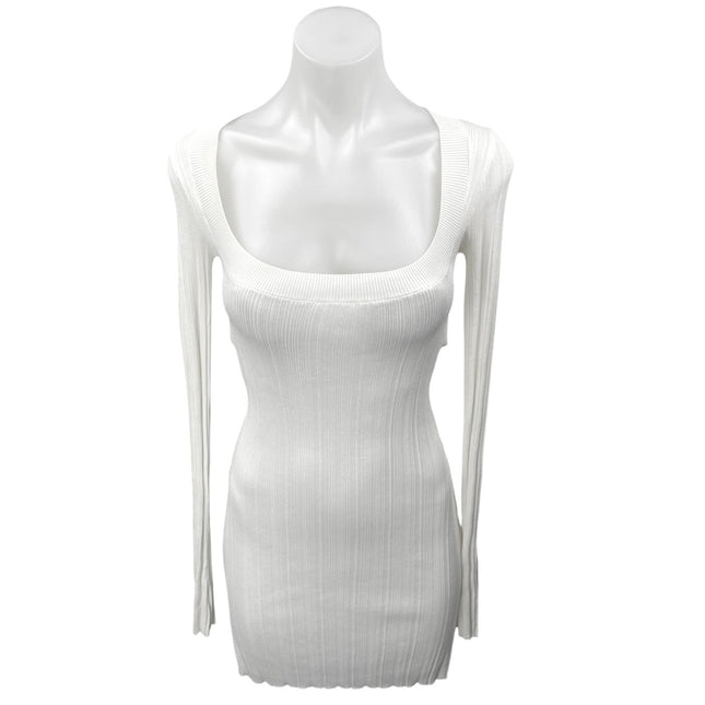 NEW Tiger Mist Hanna White Long Sleeve Scoop Neck Mini Bodycon Sweater Dress M
