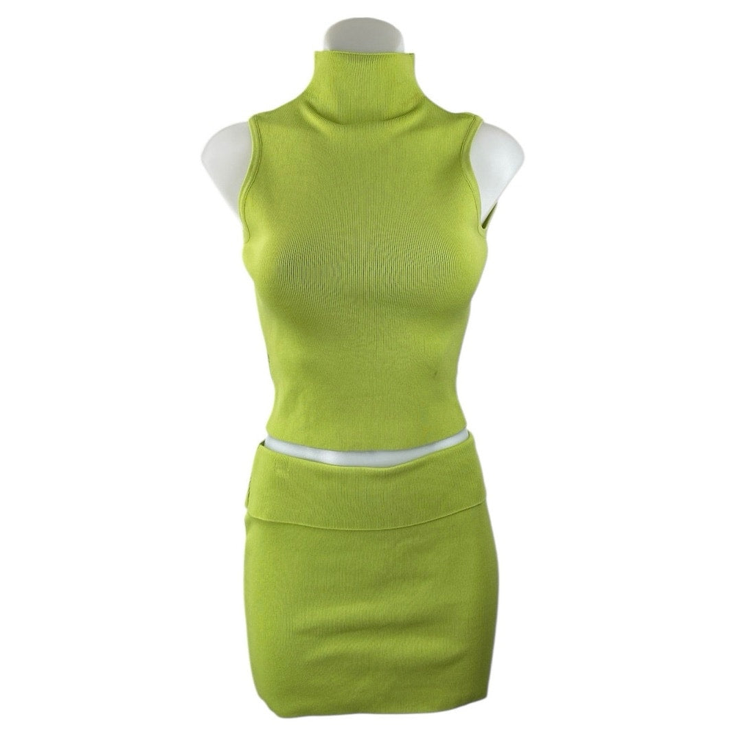 NEW Tiger Mist Women's Green Sleeveless Rib Knit Crop Tank Top & Skirt Set Size M