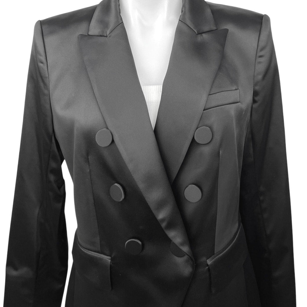 NEW Veronica Beard Miller Dickey Black Silk Satin Double Breasted Blazer Coat Jacket Size 8