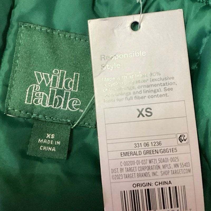 NEW Wild Fable Womens Emerald Green Satin Zip Up Collar Crop Bomber Jacket Size XS