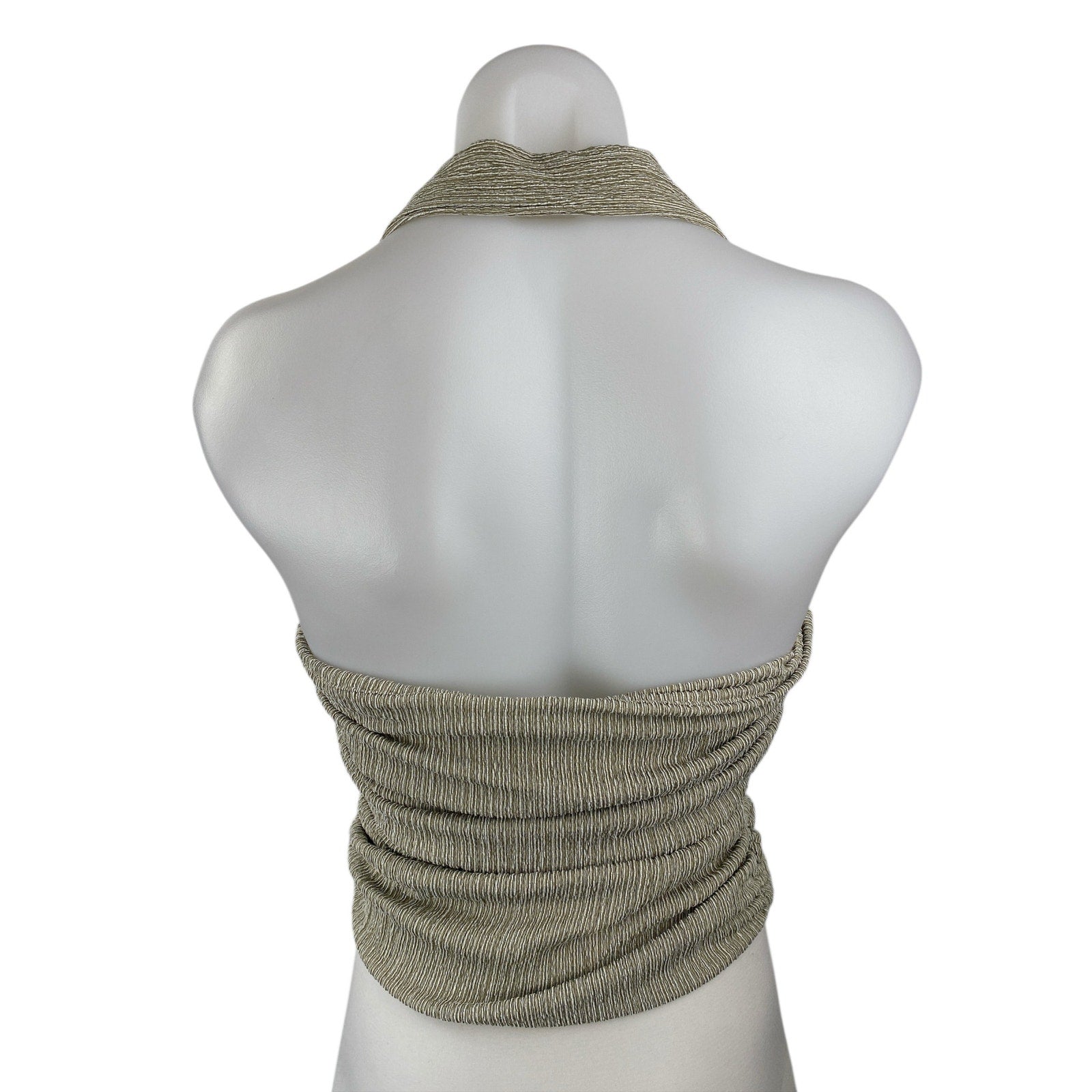 NEW Zara Women's Green Textured Sleeveless Halter Neck Slim Fit Crop Tank Top L