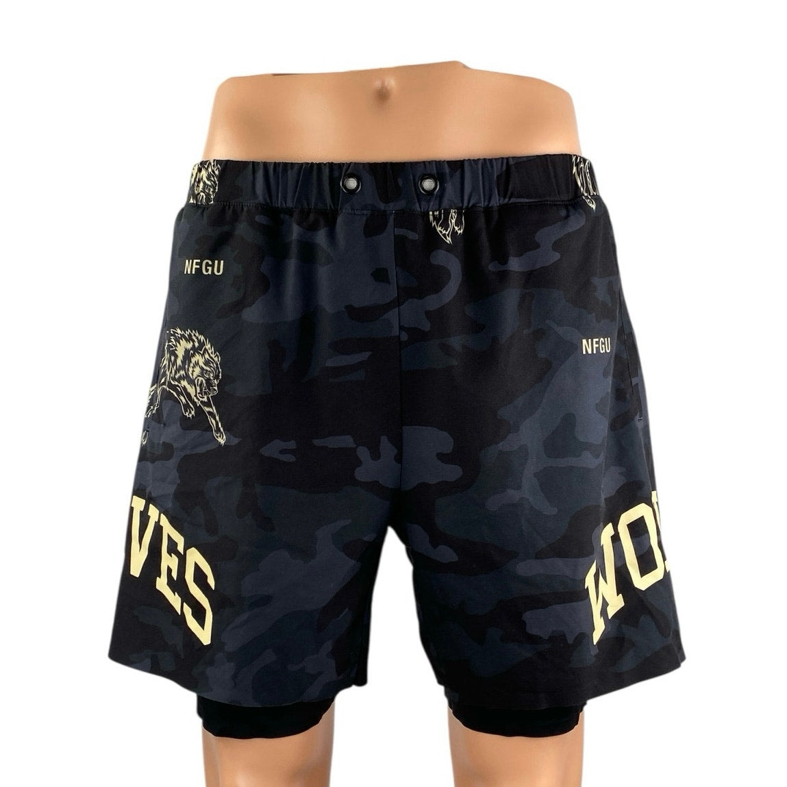 NFGU Wolves Black Blue Camo Camouflage Athletic Sports Compression Shorts Size L