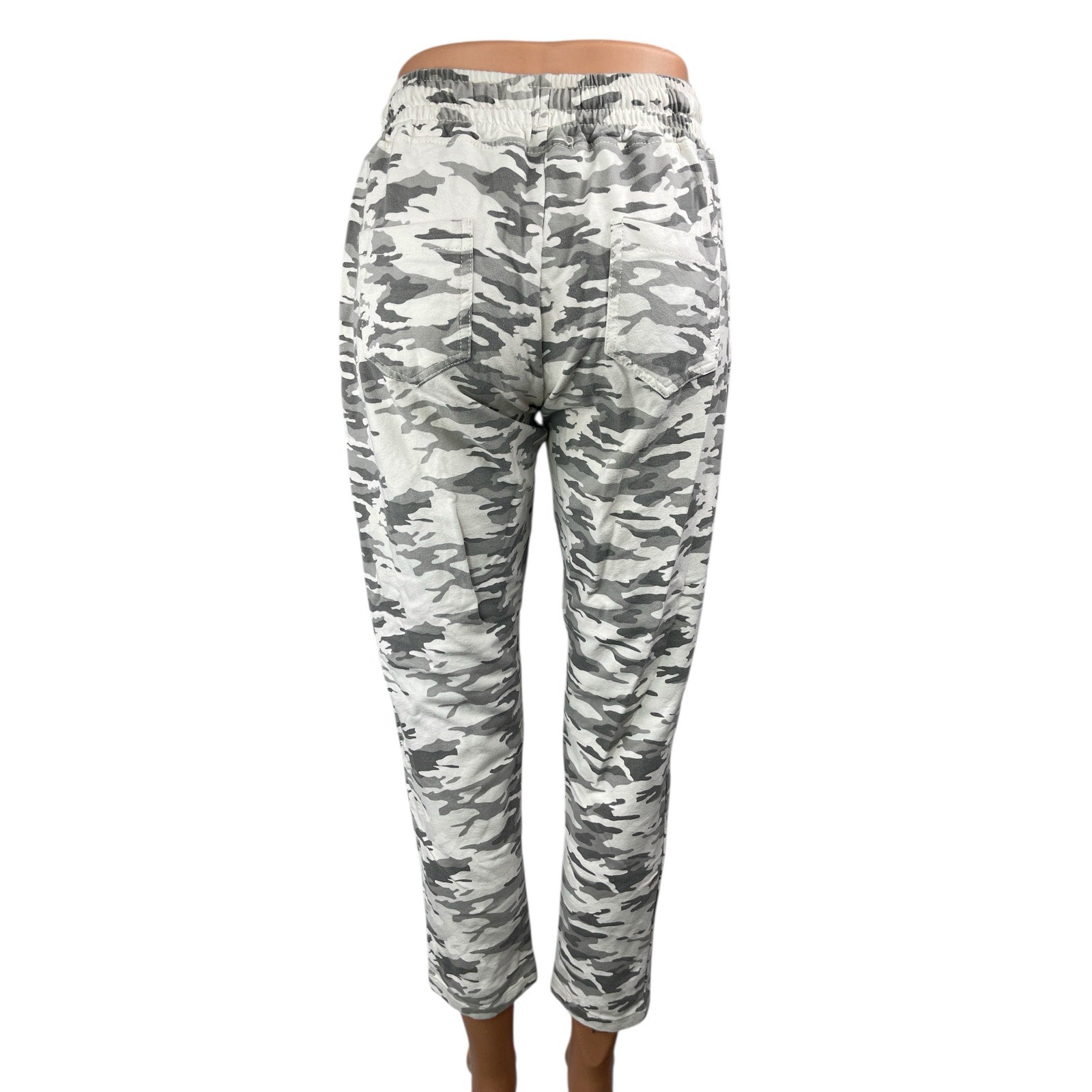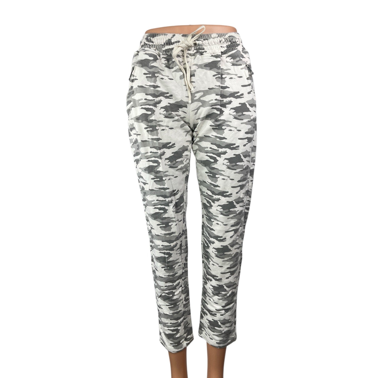 Nostalgia Gray White Camo Camouflage Mid Rise Drawstring Skinny Trousers Pants L