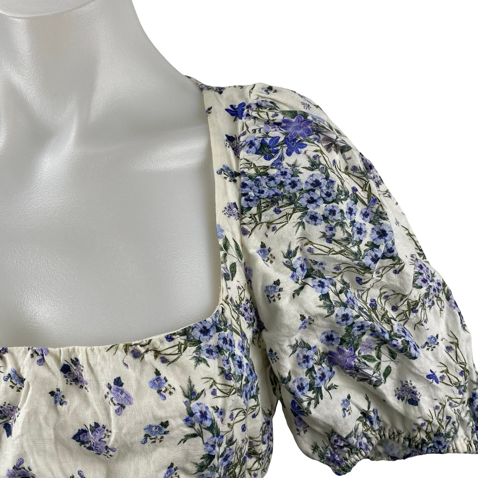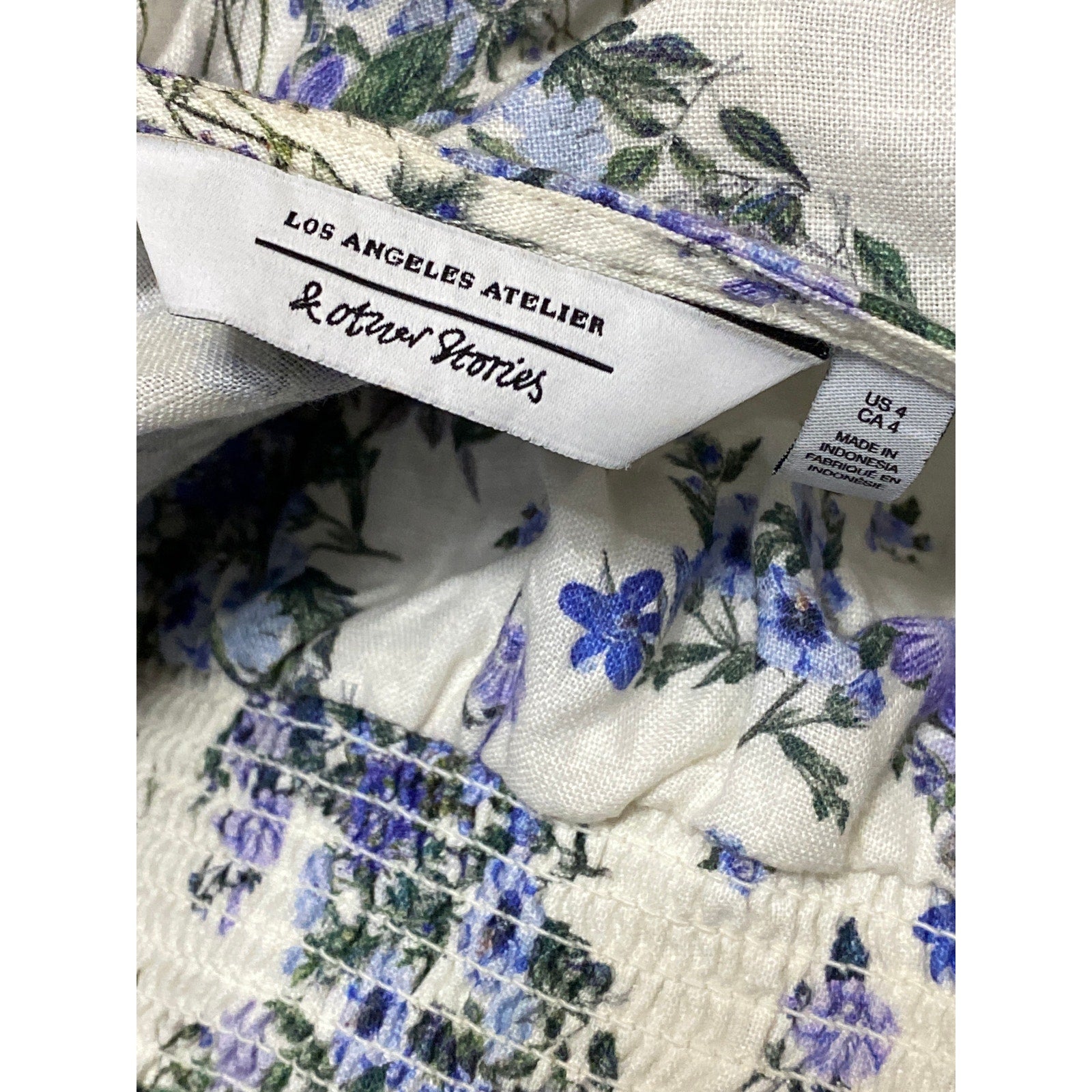 & Other Stories Blue White Floral Short Puff Sleeve Smocked Crop Blouse Top 4