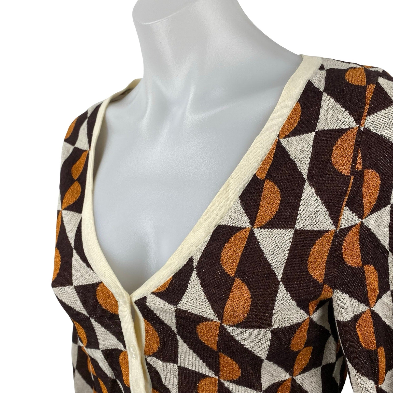 & Other Stories Geometric Jacquard Long Sleeve Crop Cardigan Sweater Top Size XS