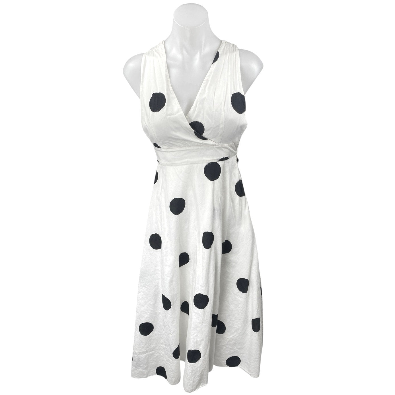 & Other Stories White Black Polka Dots Sleeveless Fit & Flare Midi Dress Size 2