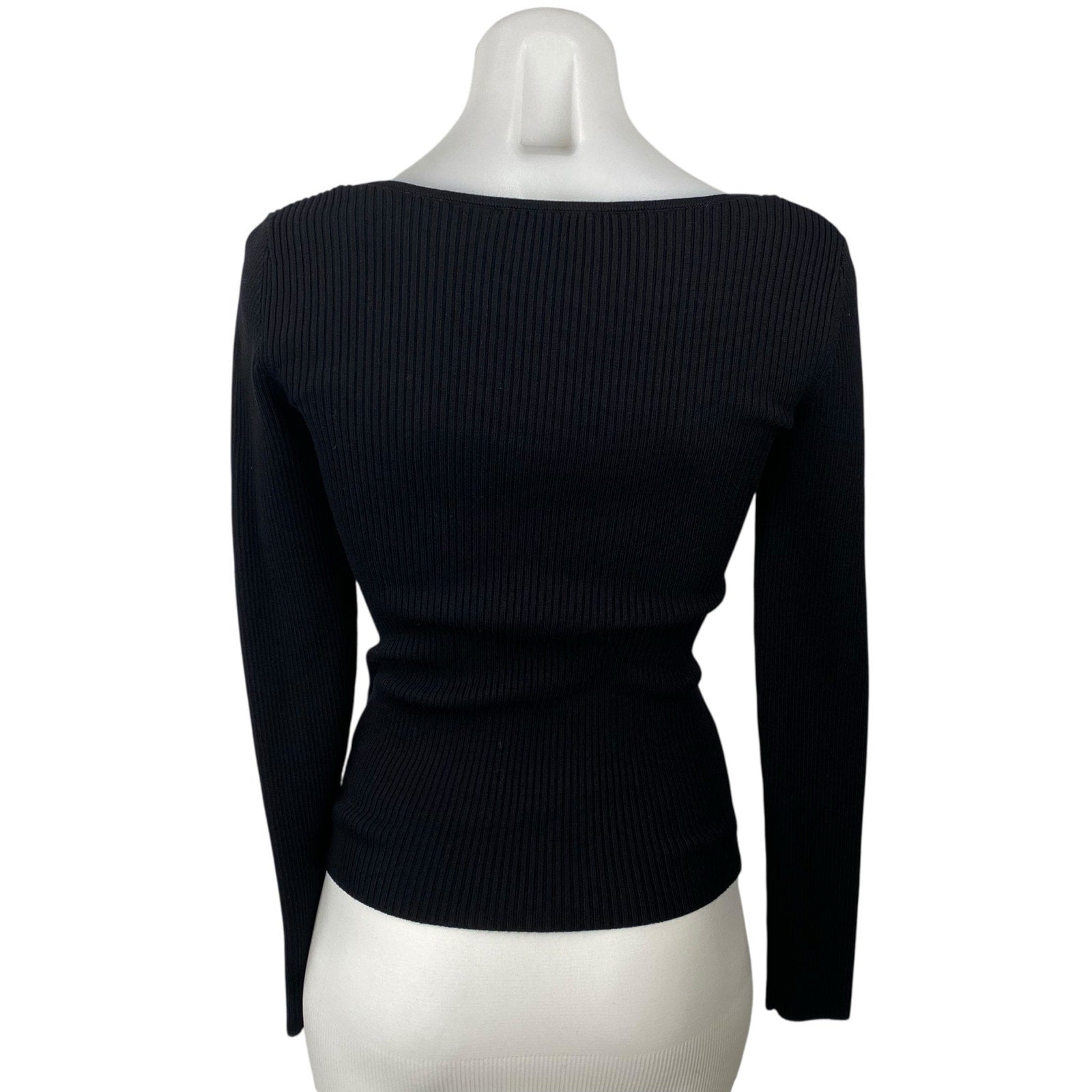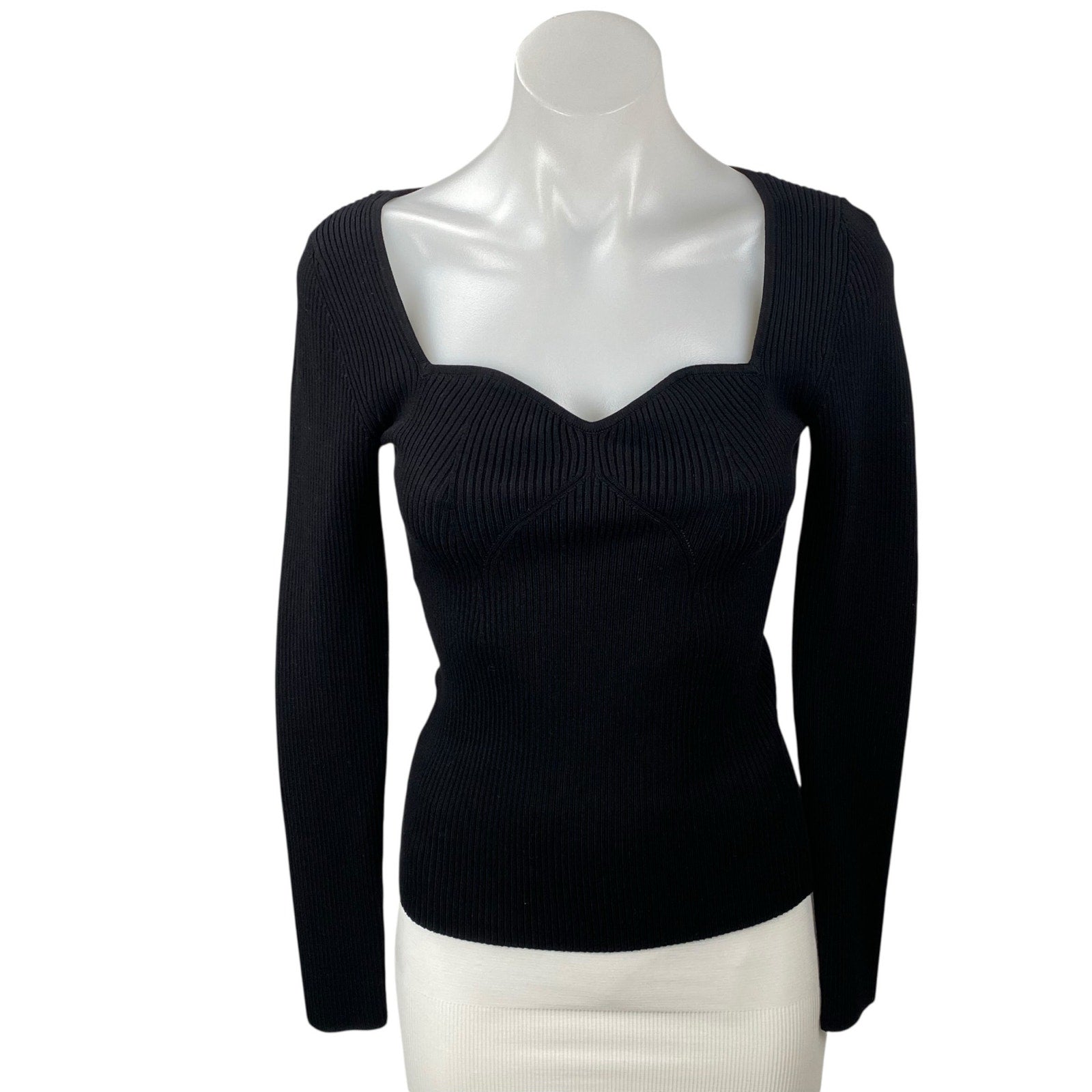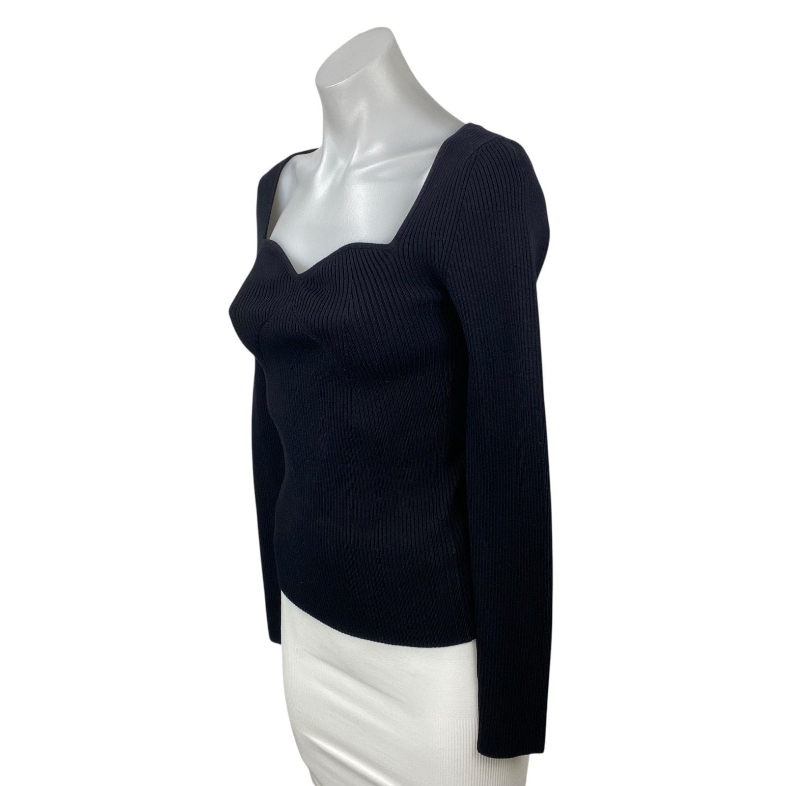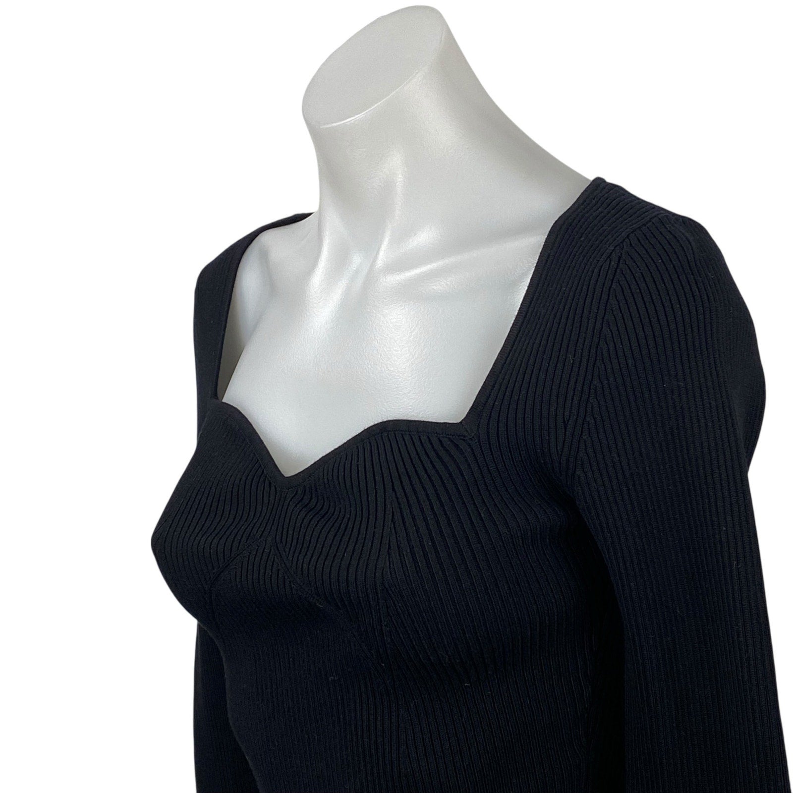 & Other Stories Women's Black Sweetheart Ribbed Knit Sweater Blouse Top Size S