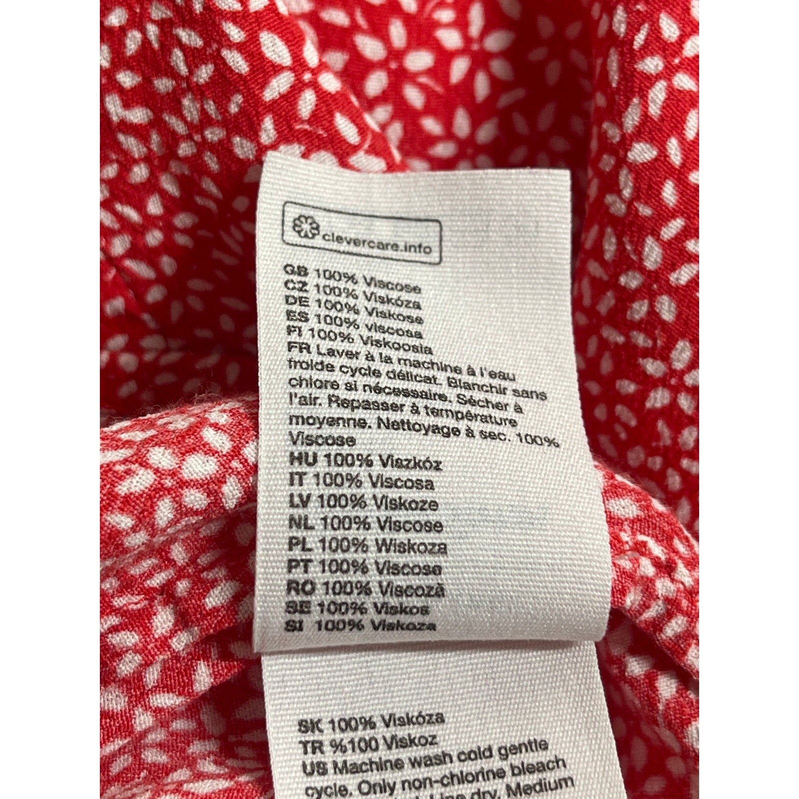 & Other Stories Women's Red Floral V Neck Short Sleeve Midi A-Line Wrap Dress 8
