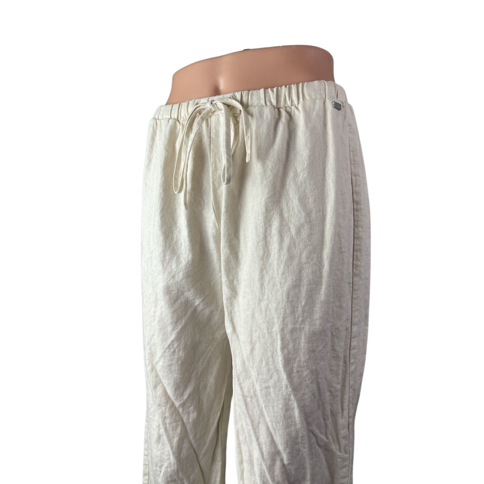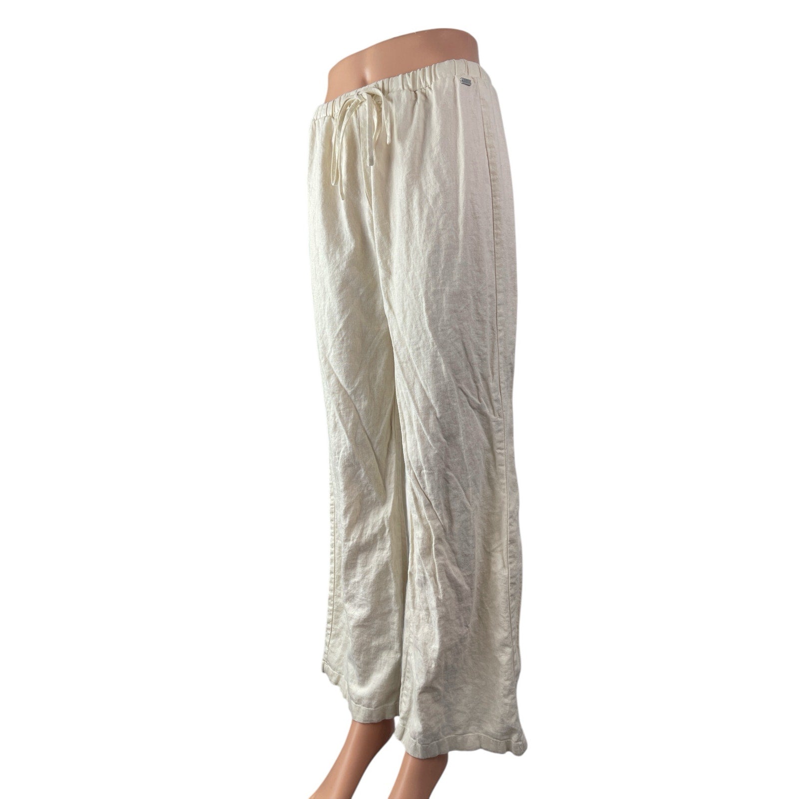 Pacific Republic Women's White High Waisted Tie Wide Leg Trousers Pants Size M