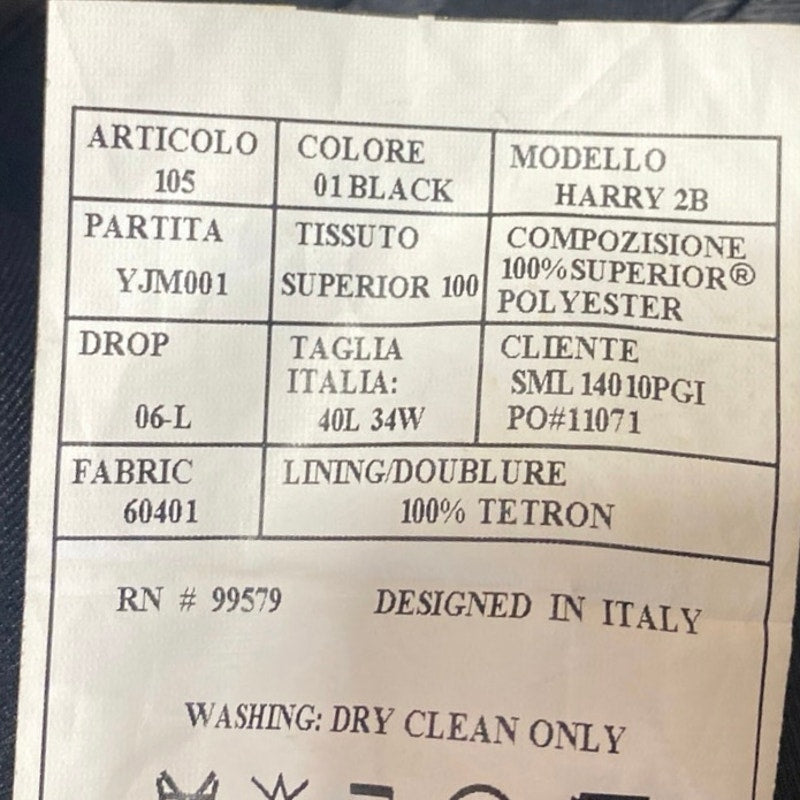 Paolo Giardini Harry Men's Black Long Sleeve Blazer Coat Suit Jacket Size 40L