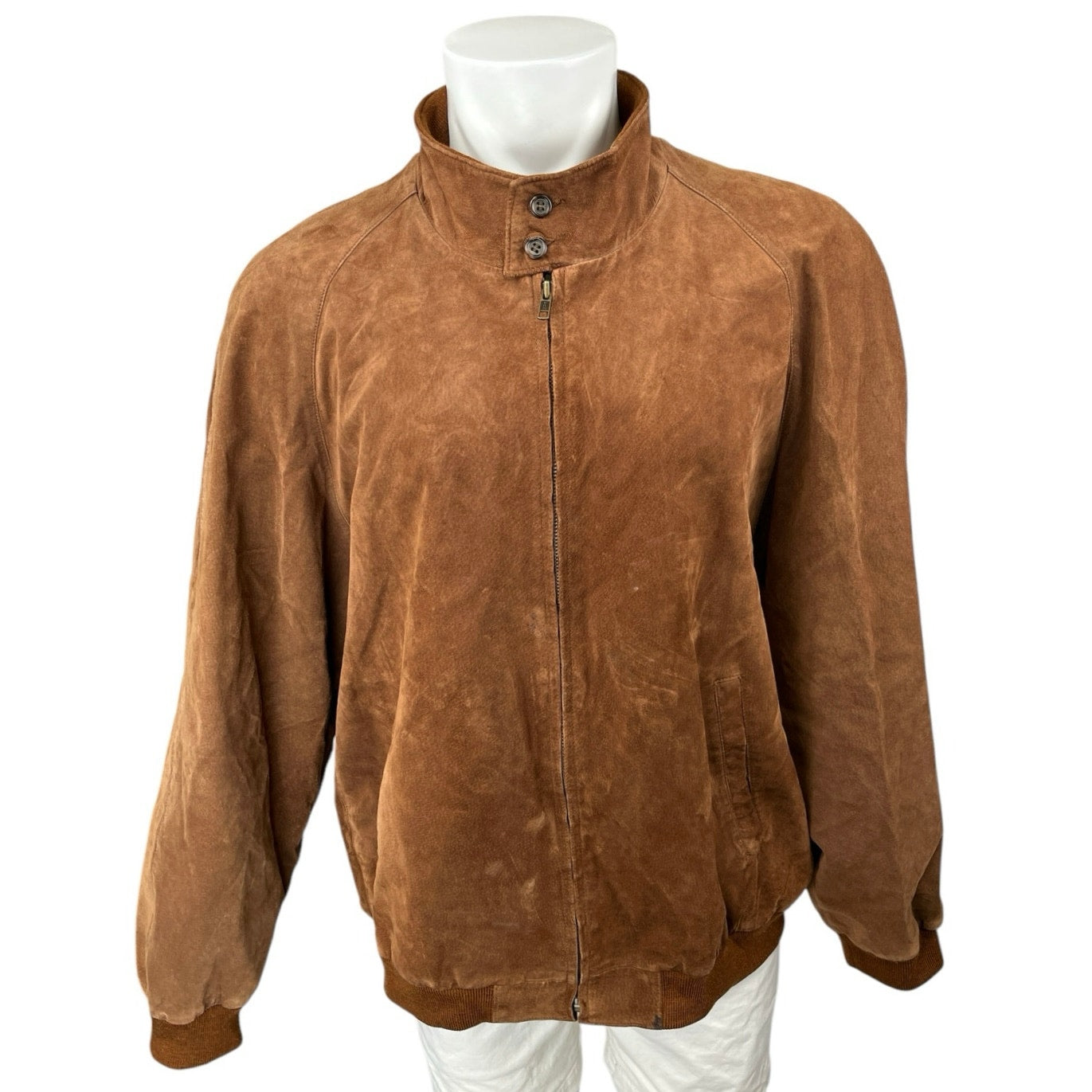 Paul Stuart Men's Brown 100% Genuine Leather Suede Zip Up Bomber Coat Jacket XL