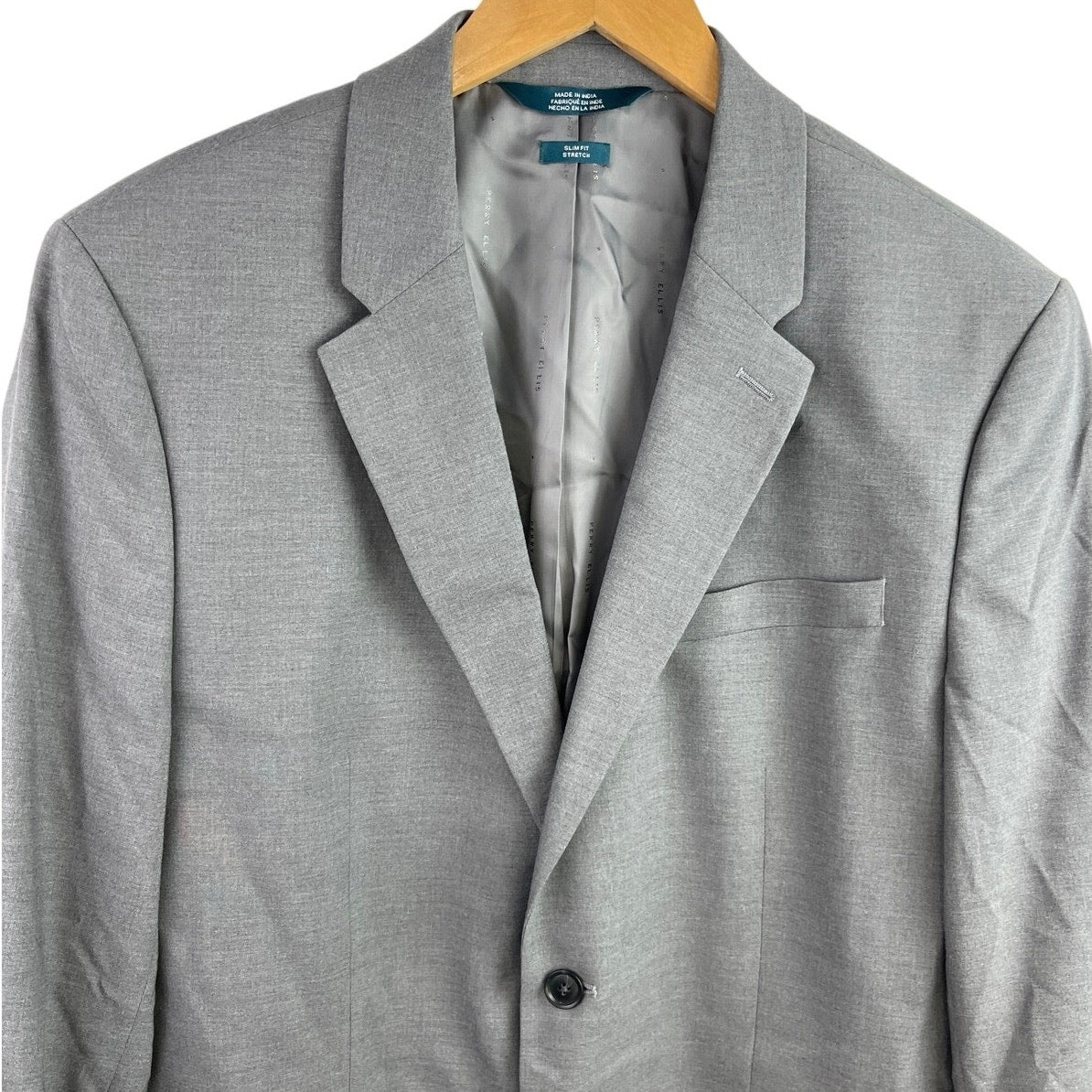 Perry Ellis Men's Gray Slim Fit Stretch Notch Lapel Two Button Suit Jacket 44S