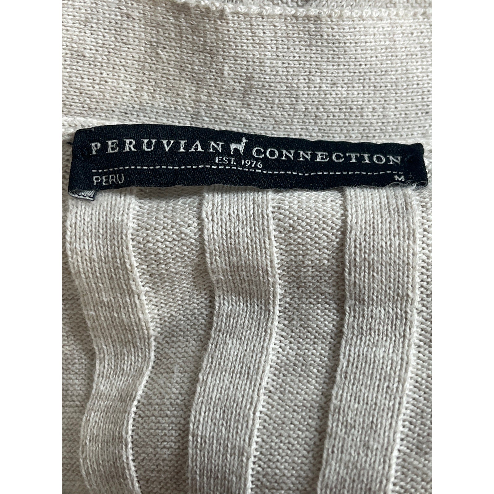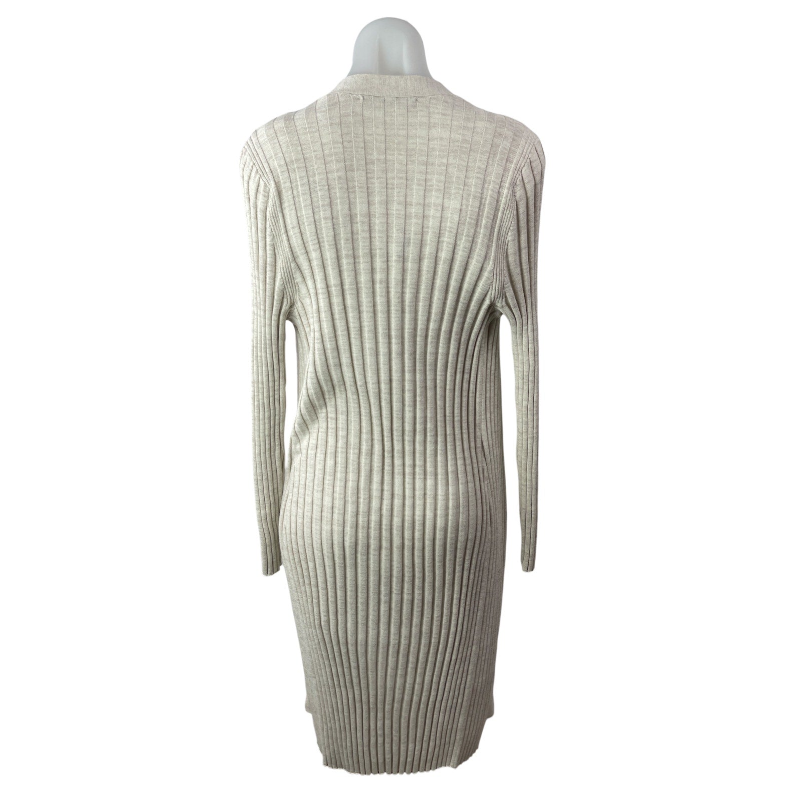 Peruvian Connection Beige Ribbed Midi Bodycon Long Cardigan & Tank Dress Set M