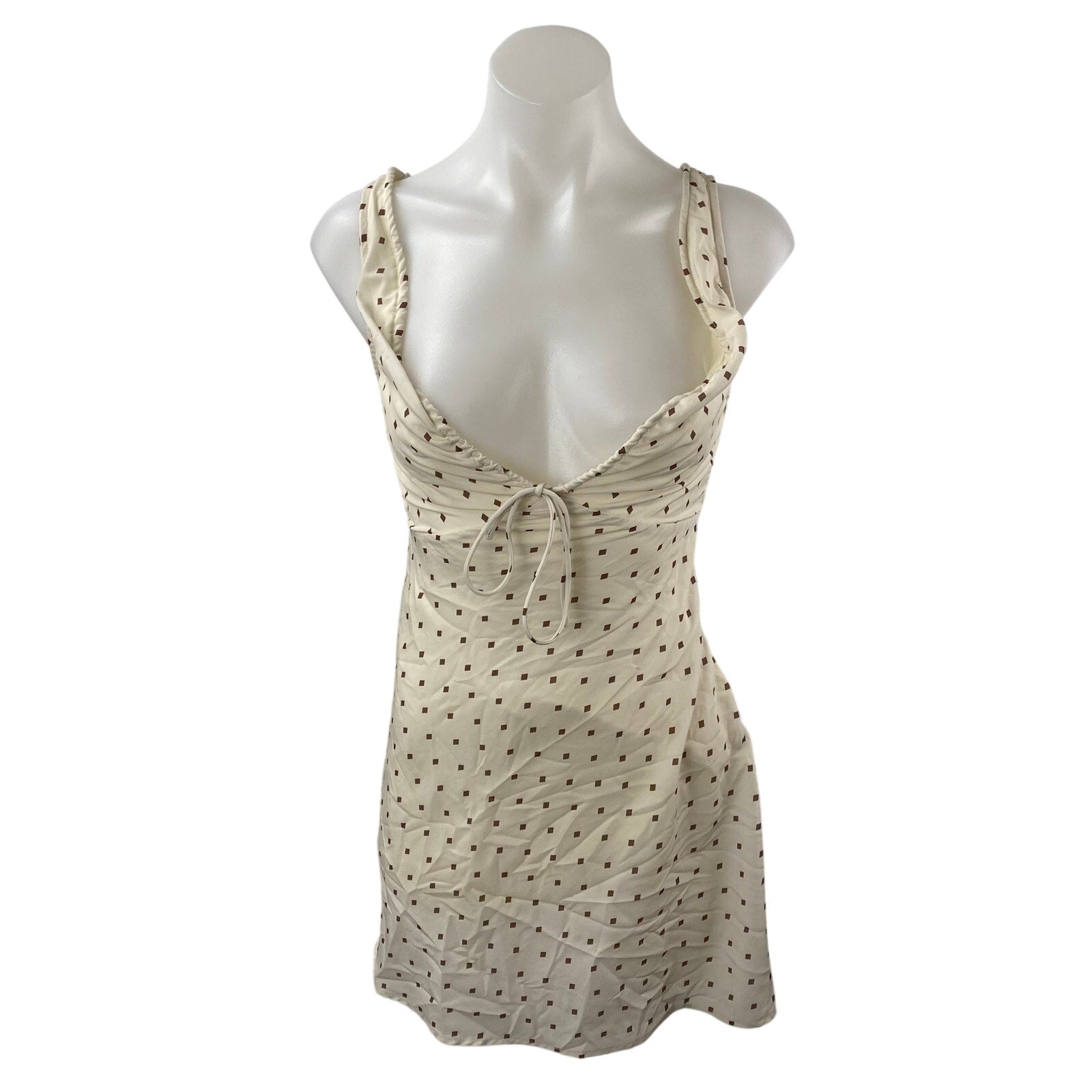 Princess Polly Cream Polka Dot Sleeveless Plunge V Neck Mini A-Line Tank Dress 2