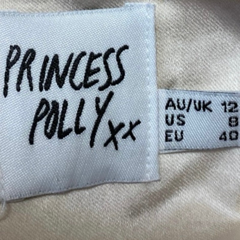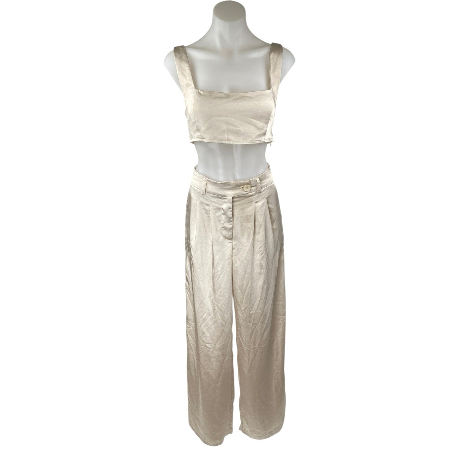 Princess Polly Cream Silky Satin Crop Top & WideLeg Trousers Matching Set Size 8