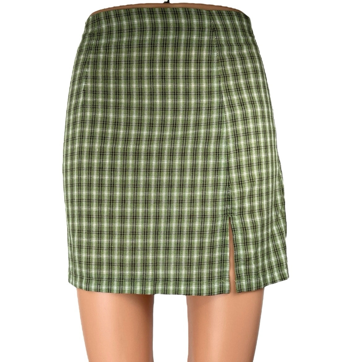 Princess Polly Green Plaid Checkered Slit Zipper Mini Straight Pencil Skirt Size 2