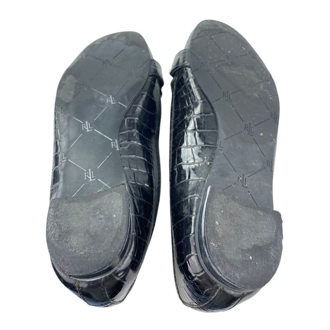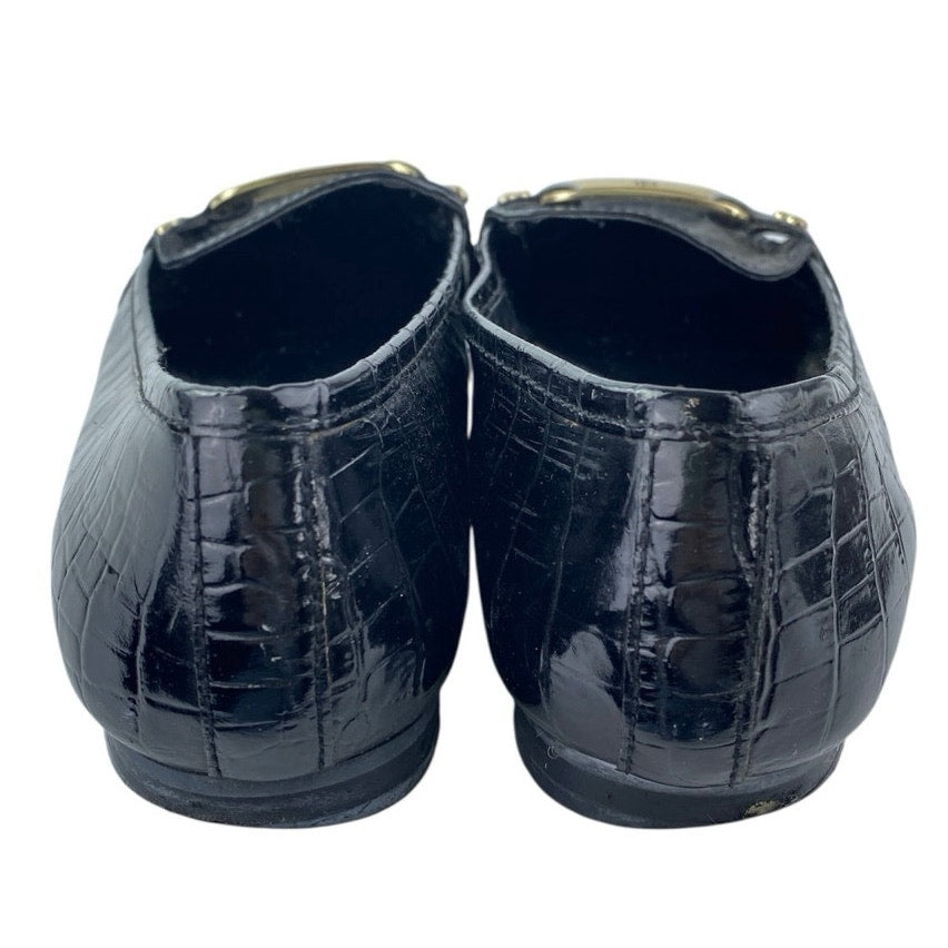 Ralph Lauren Women's Black Gold Logo Croc Leather Chain Slip On Loafers Shoes 6M